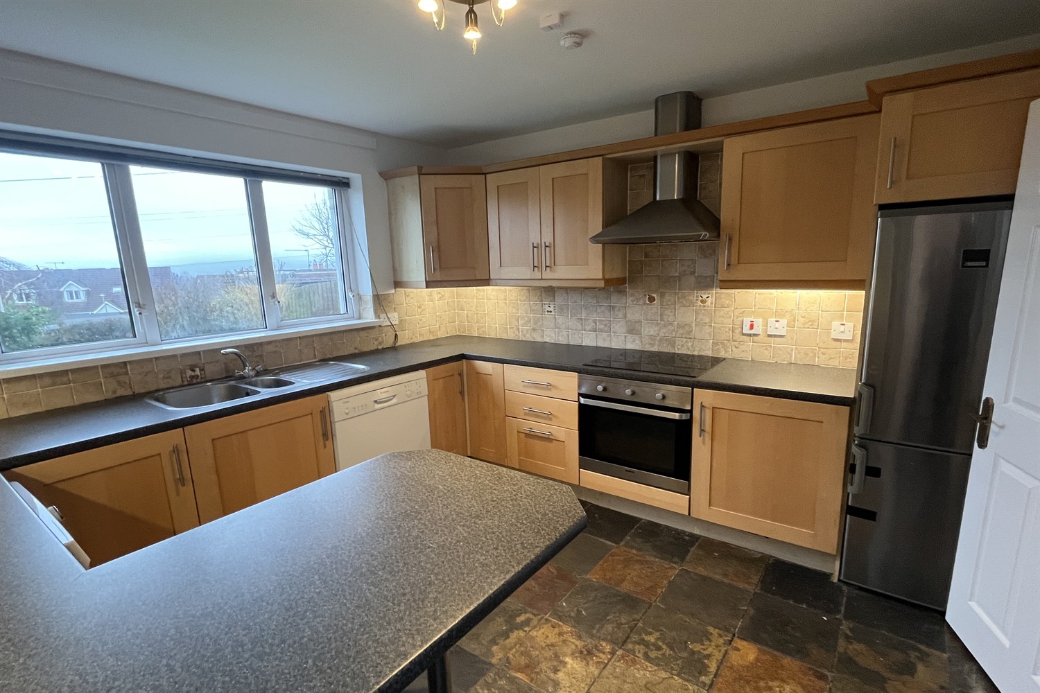 The fully fitted kitchen is equipped with a breakfast bar, combining functionality with a modern touch. The family bathroom boasts a white suite, complementing the overall contemporary finish of the home. Additional benefits include oil-fired central heating and double glazed windows, ensuring warmth and energy efficiency throughout.