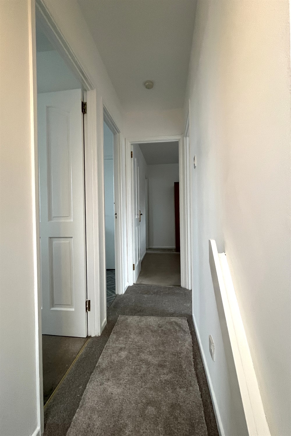 laminated timber flooring, single panelled radiator, under-stairs storage cupboard.