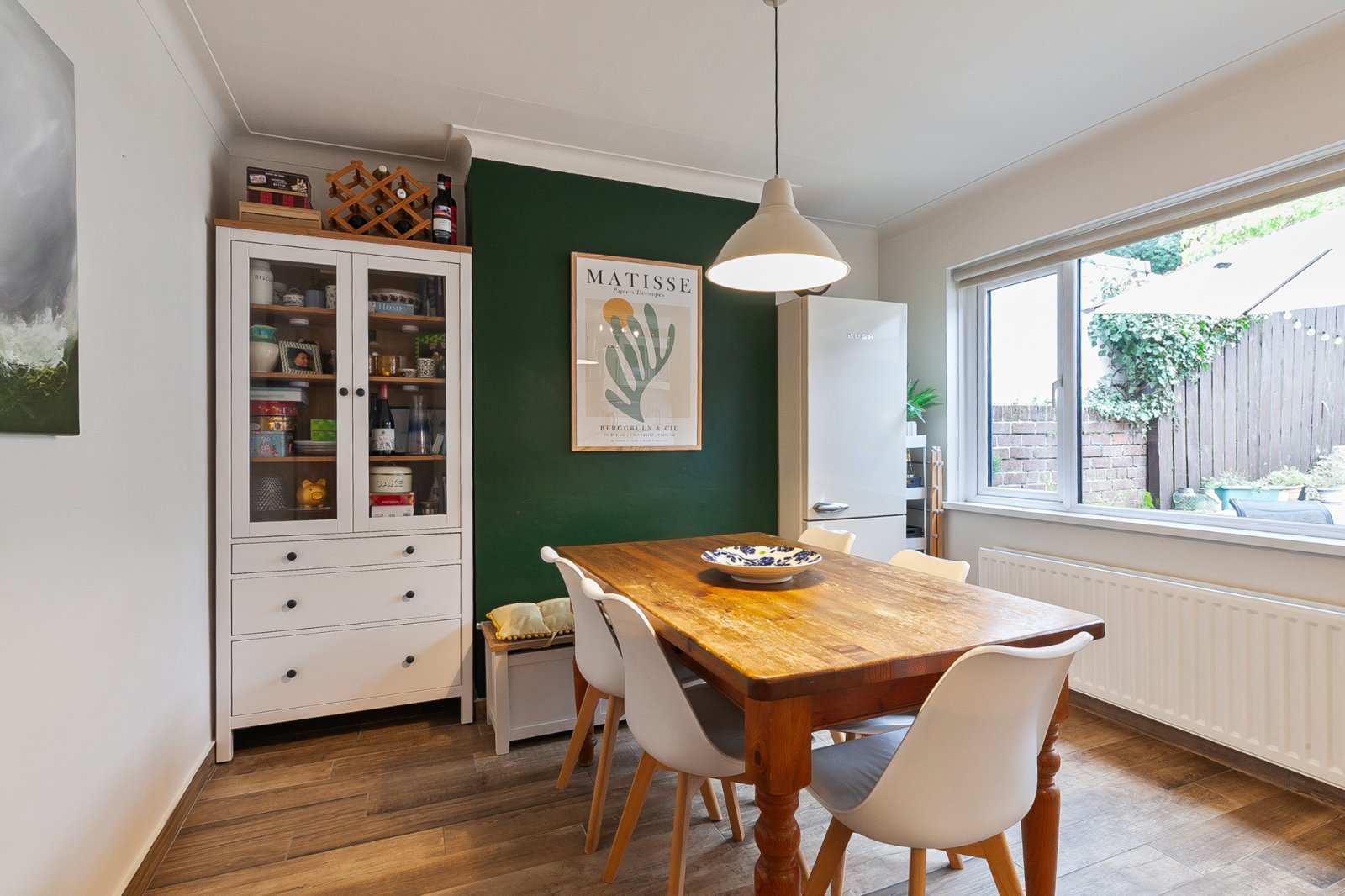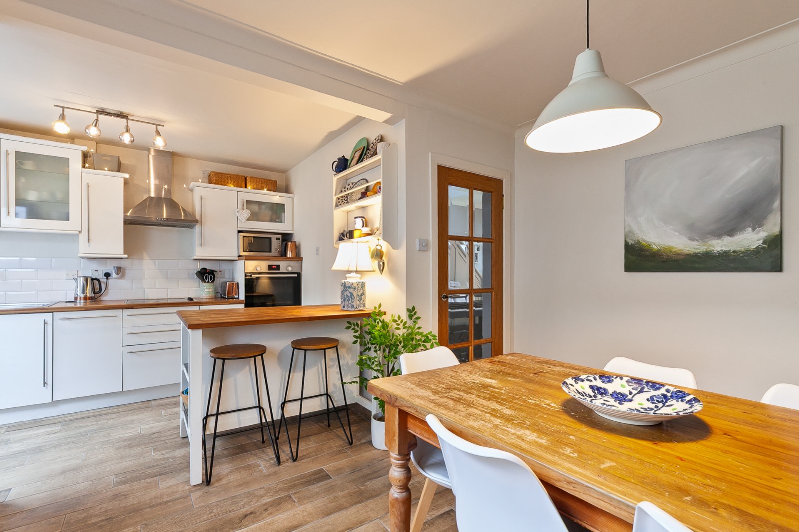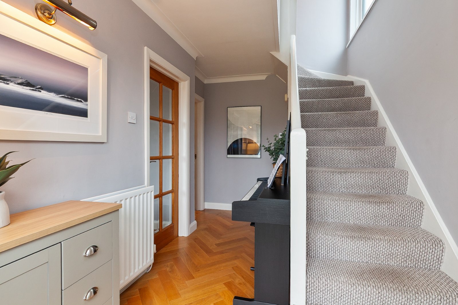 Solid wood parquet floor, understairs storage cupboard