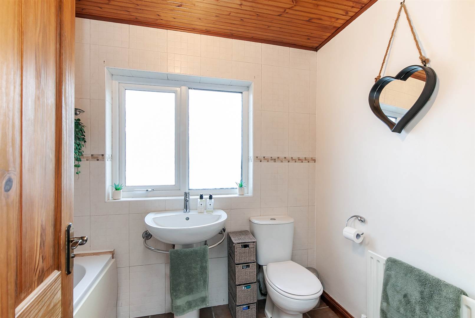 Main bathroom with white suite