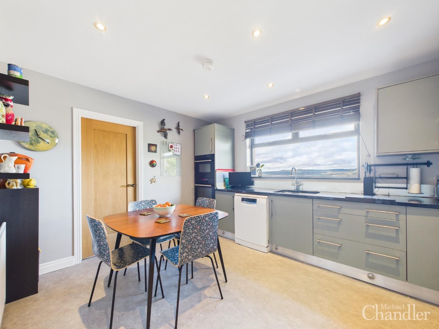 The entrance level offers an entrance hall, a dining room and a reception room or fourth bedroom if required. Down a few steps leads you to a living room with a feature fireplace and sliding patio doors to the garden, a luxury bathroom with a separate bath and shower enclosure, a modern kitchen with integrated appliances and a utility room with matching units. Upstairs offers a large master bedroom with stunning views and an en-suite shower room and a further two double bedrooms.