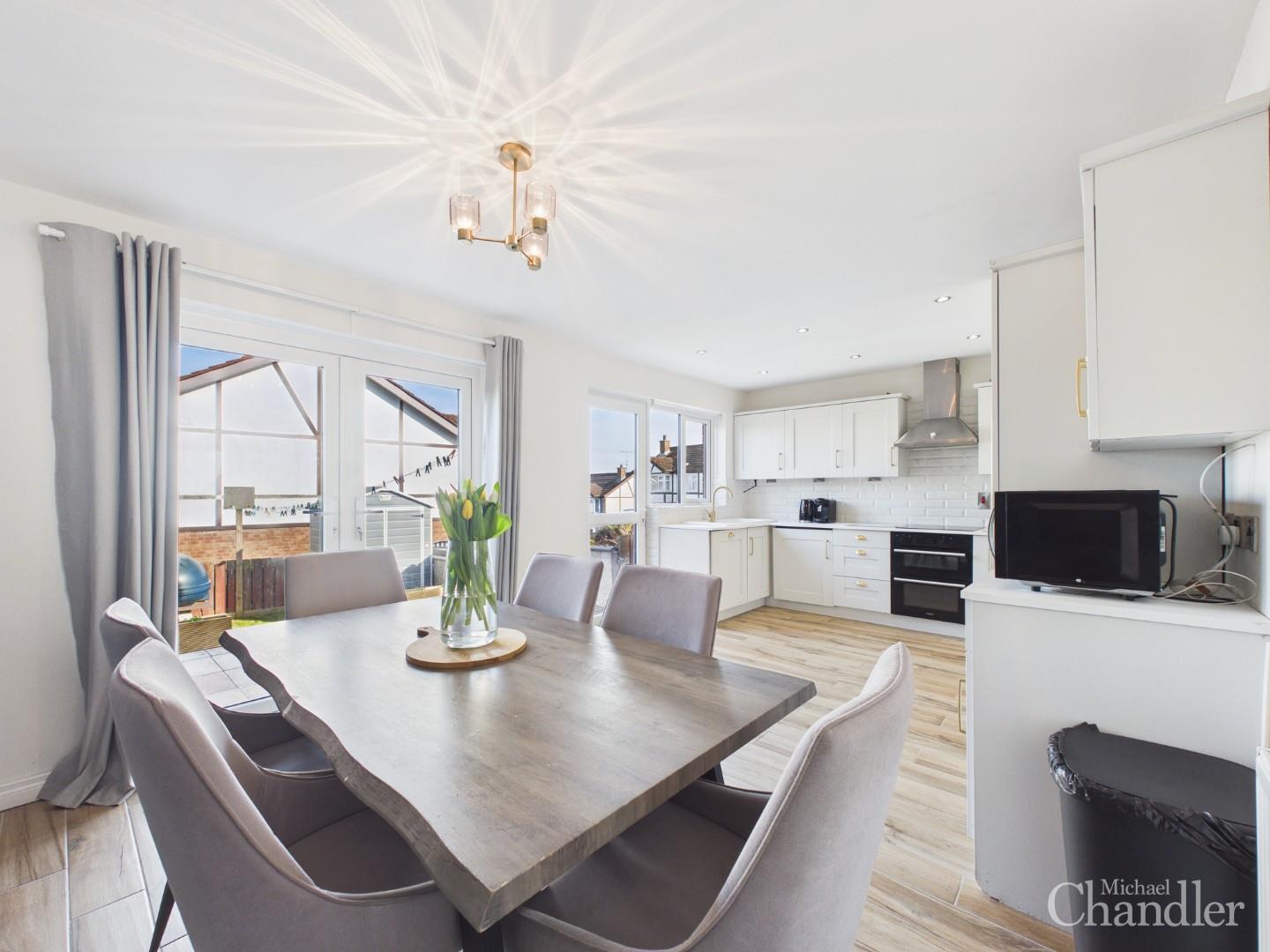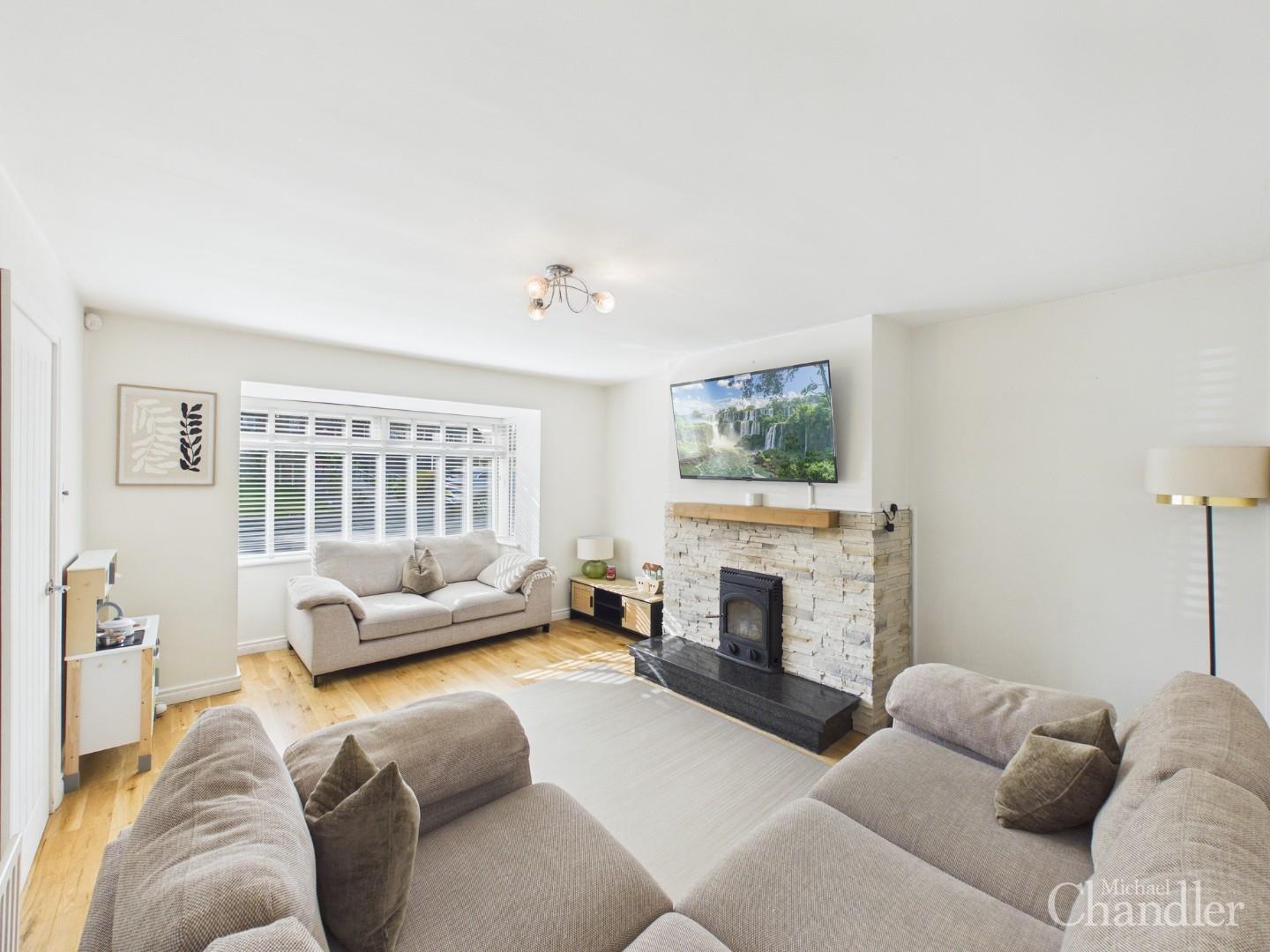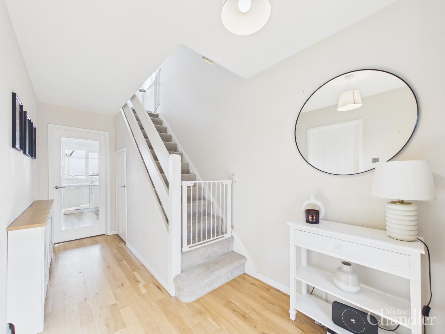 The home comprises a bright and welcoming entrance hall, complete with convenient under-stair storage. The spacious living room is flooded with natural light and features an attractive bay window and charming feature fireplace. To the rear, a contemporary open-plan kitchen and dining area boasts integrated appliances and double doors leading directly to the garden - perfect for entertaining.