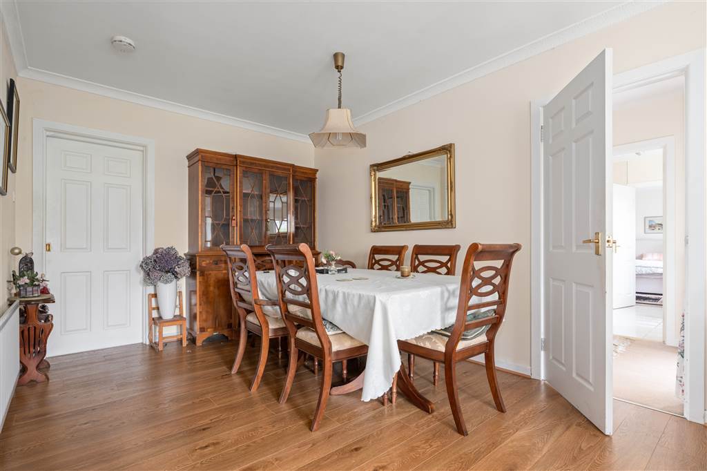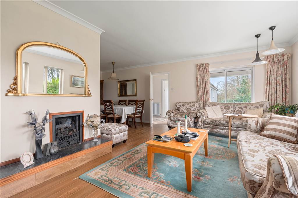 With fireplace to tiled hearth. PVC sliding doors leading to paved patio. Spacious area for dining. Coving to ceiling. Laminated wooden flooring.