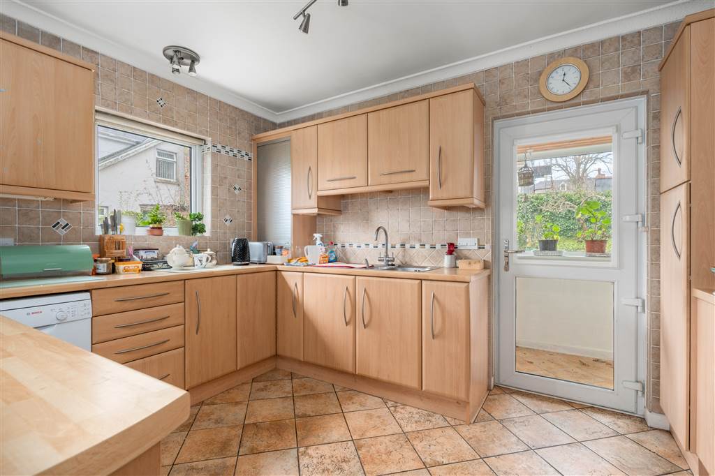 With fitted units, stainless-steel sink unit and drainer with stainless-steel mixer tap. Plumbed for washing machine. Splash back tiling. Access to integral garage.