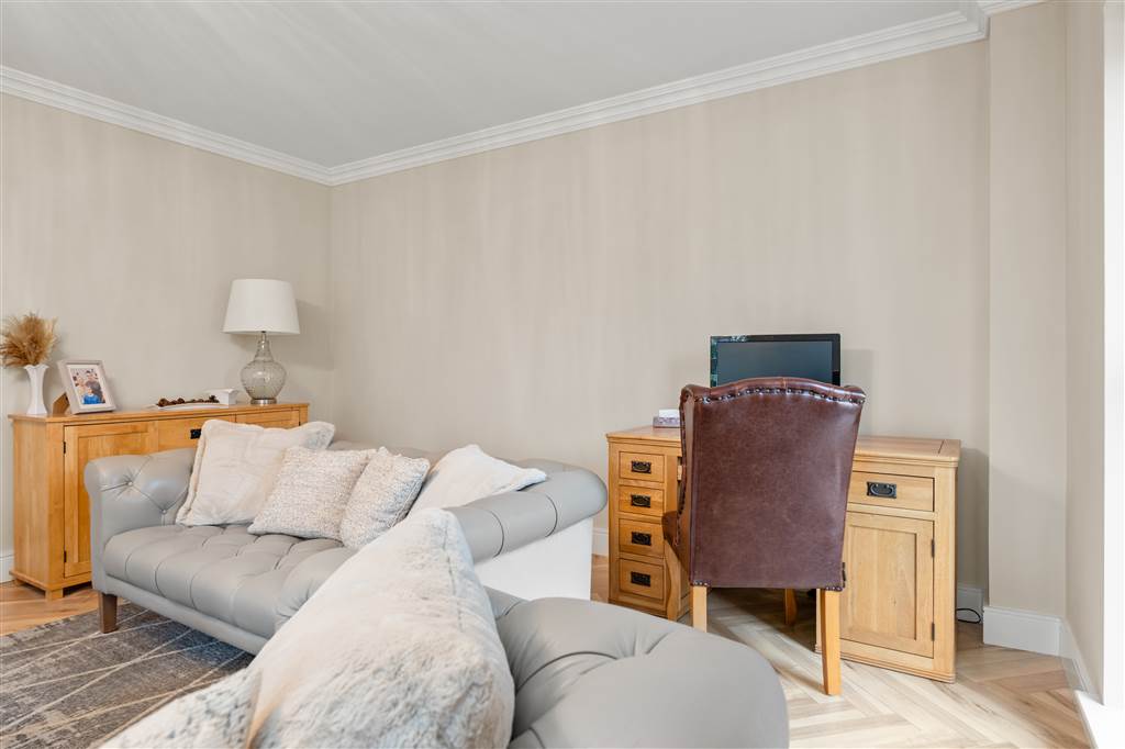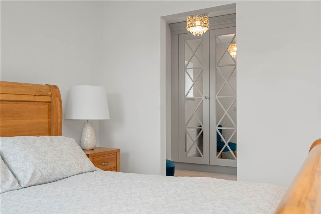 With access to insulated loft. Double hot-press with shelved storage. Coving to ceiling. Spot lighting to ceiling.