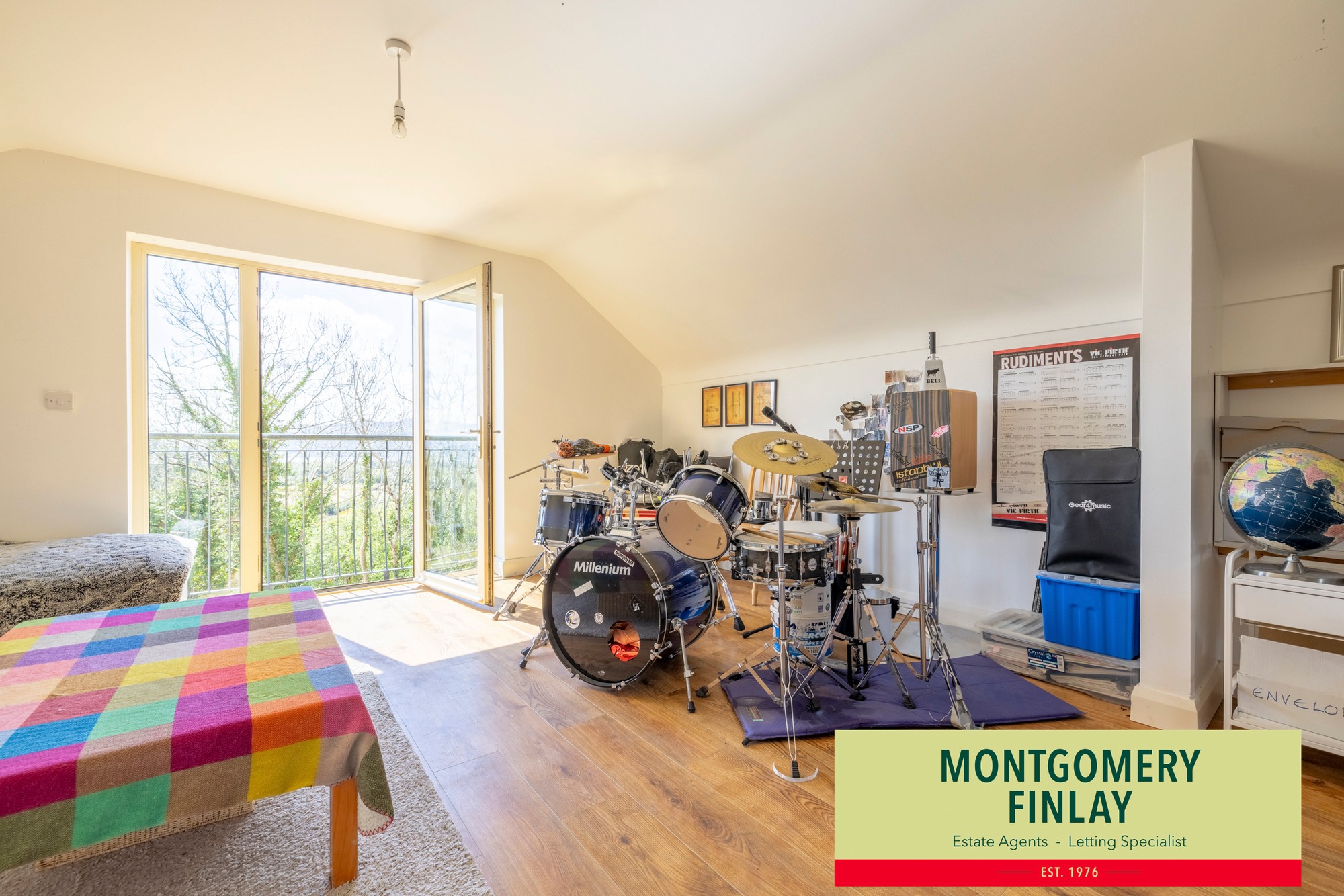 The property further benefits from five bathrooms, ensuring comfort and convenience for larger families or visiting guests. A detached garage with additional living space above presents further potential for conversion into a self-contained apartment or guest accommodation (subject to necessary approvals).