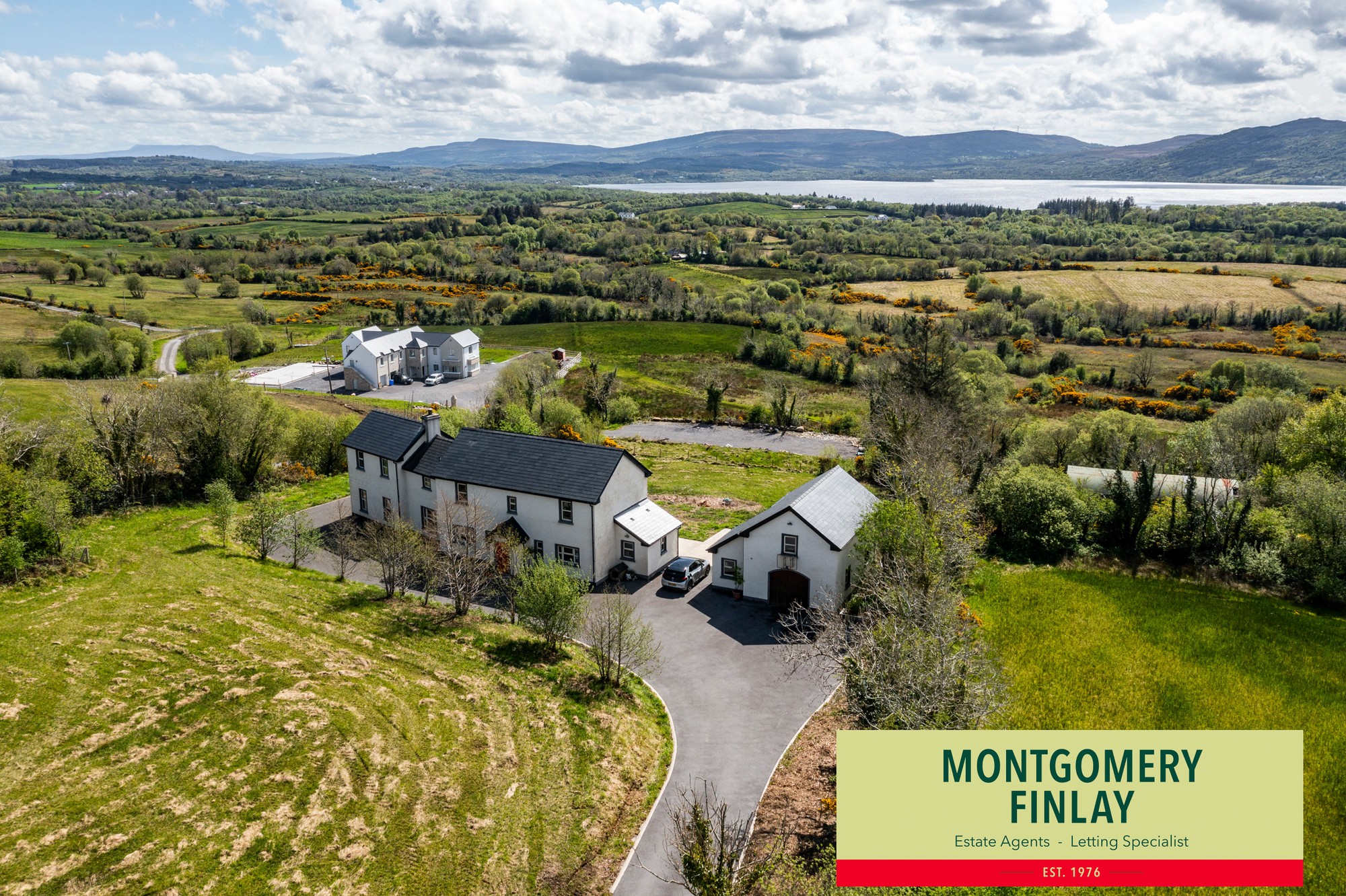 Set within a peaceful and highly scenic rural location near Garrison and Belleek, this impressive four-bedroom detached home offers substantial, flexible accommodation with the potential to create up to six bedrooms. Finished to a high standard throughout, the property combines spacious modern living with energy-efficient design and beautifully maintained private grounds.