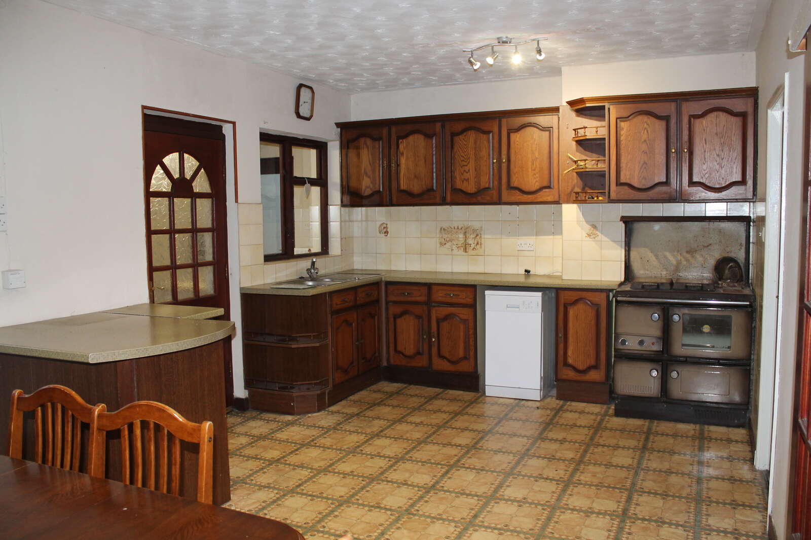 As the dwelling is set on a generous plot, there are frontal and side gardens, three sheds and a drive up around to a large, cemented rear yard.
