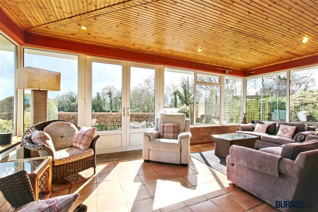 Five reception rooms including: Family Lounge: Living Room; Study Office area, Formal Dining Room and a spacious triple-aspect Sunroom opening onto a flagged BBQ/patio area and rear lawn.