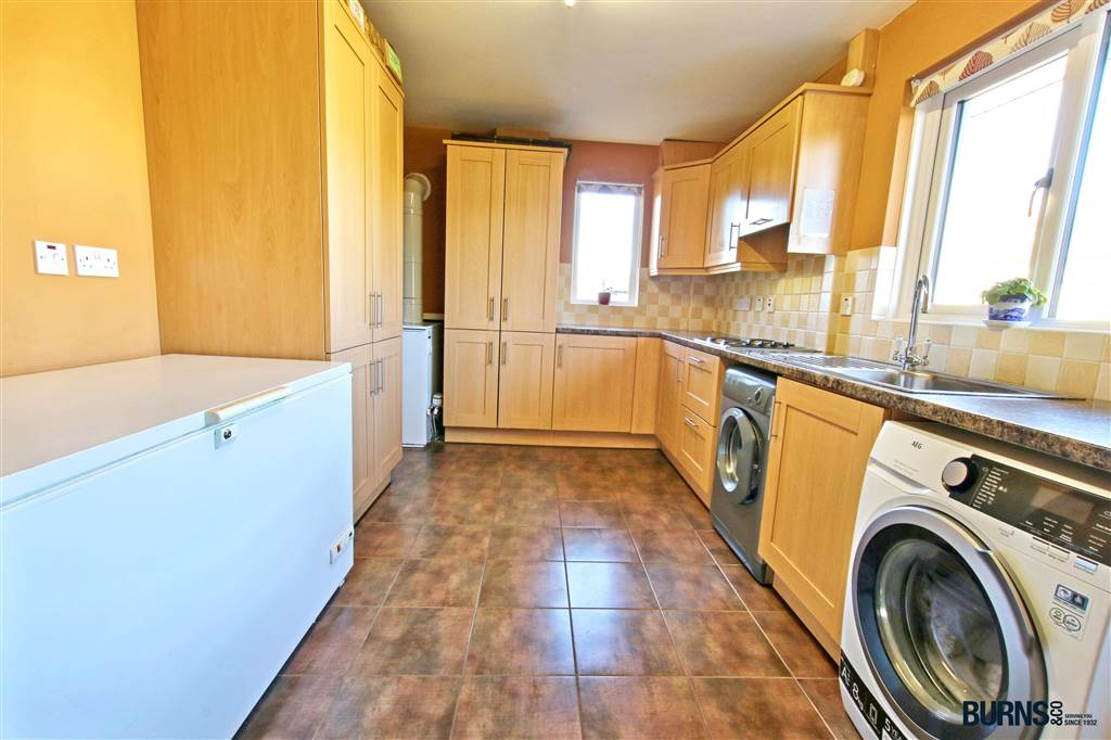 tiled floor; range of eye and low-level units; sink and drainer; electric hob with extractor hood; plumbed for washing machine and provision left for tumble dryer; door to rear yard, outbuildings and gardens.