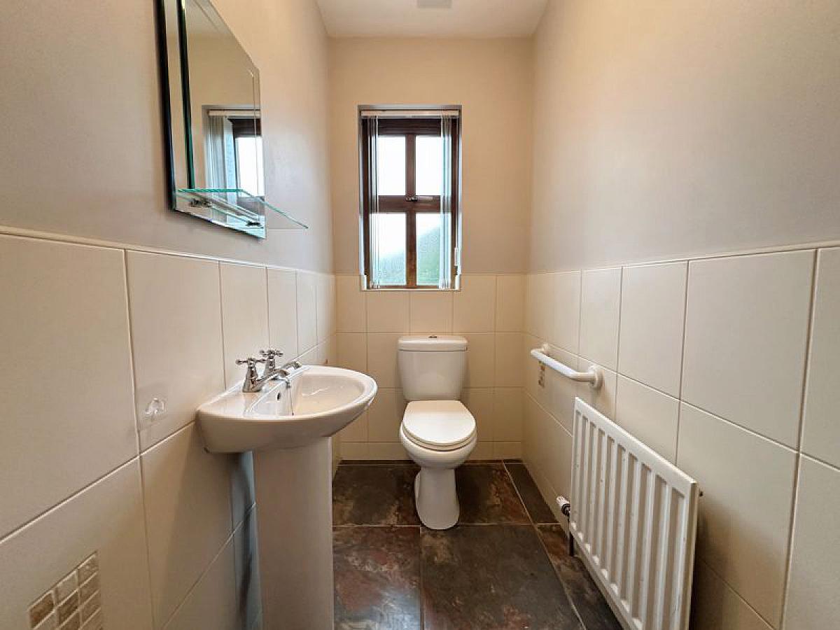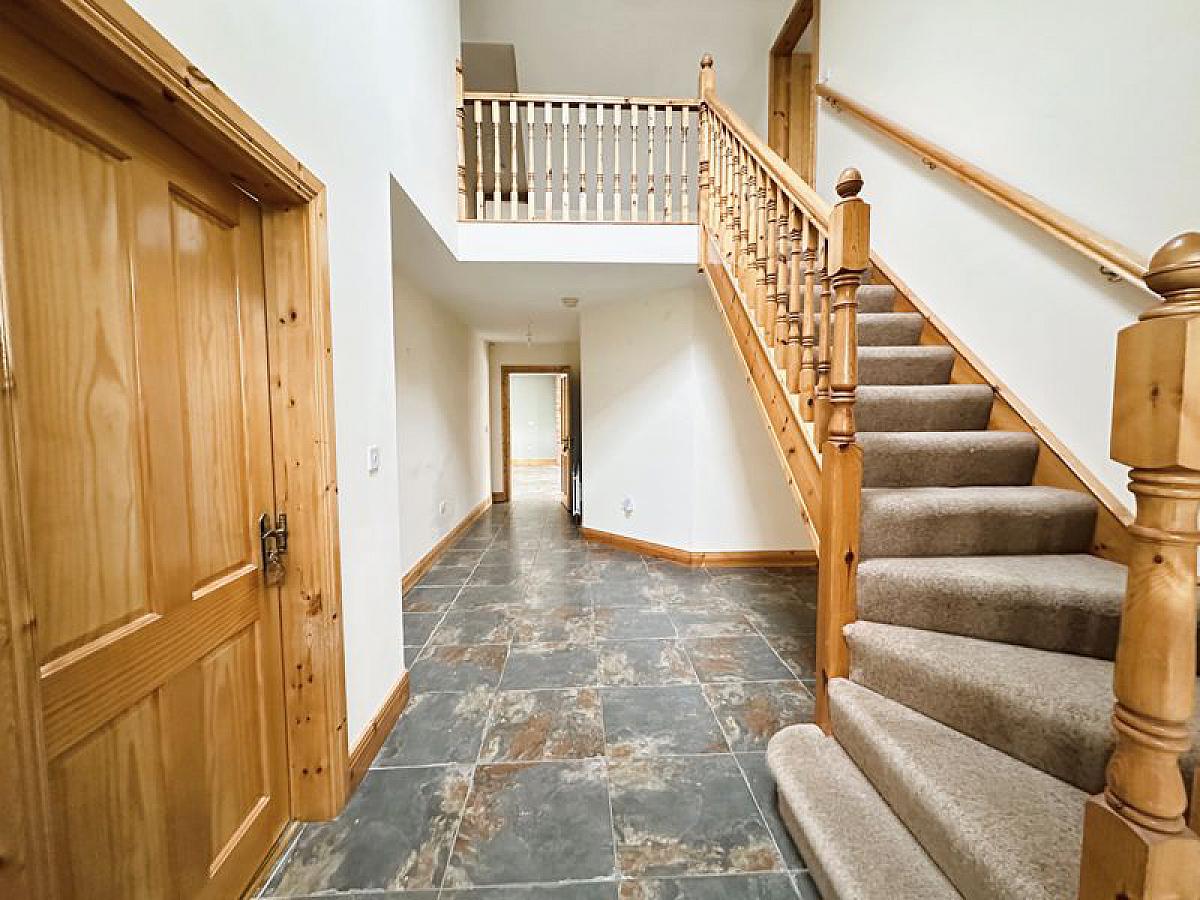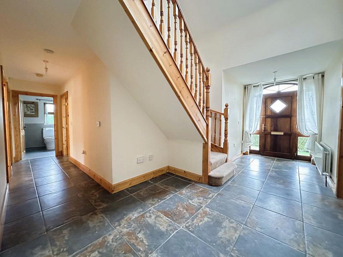 PVC double glazed rear door, tiled floor, hotpress, 1 radaitor.