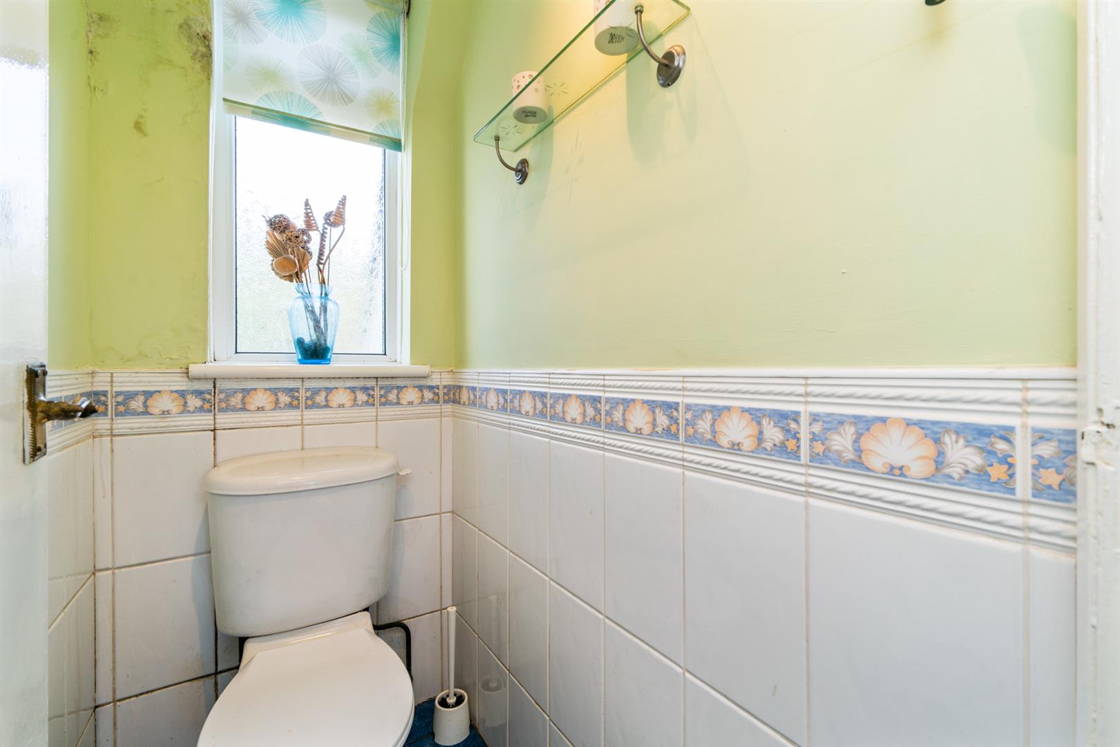 Low flush WC, part tiled walls, ceramic tiled flooring.