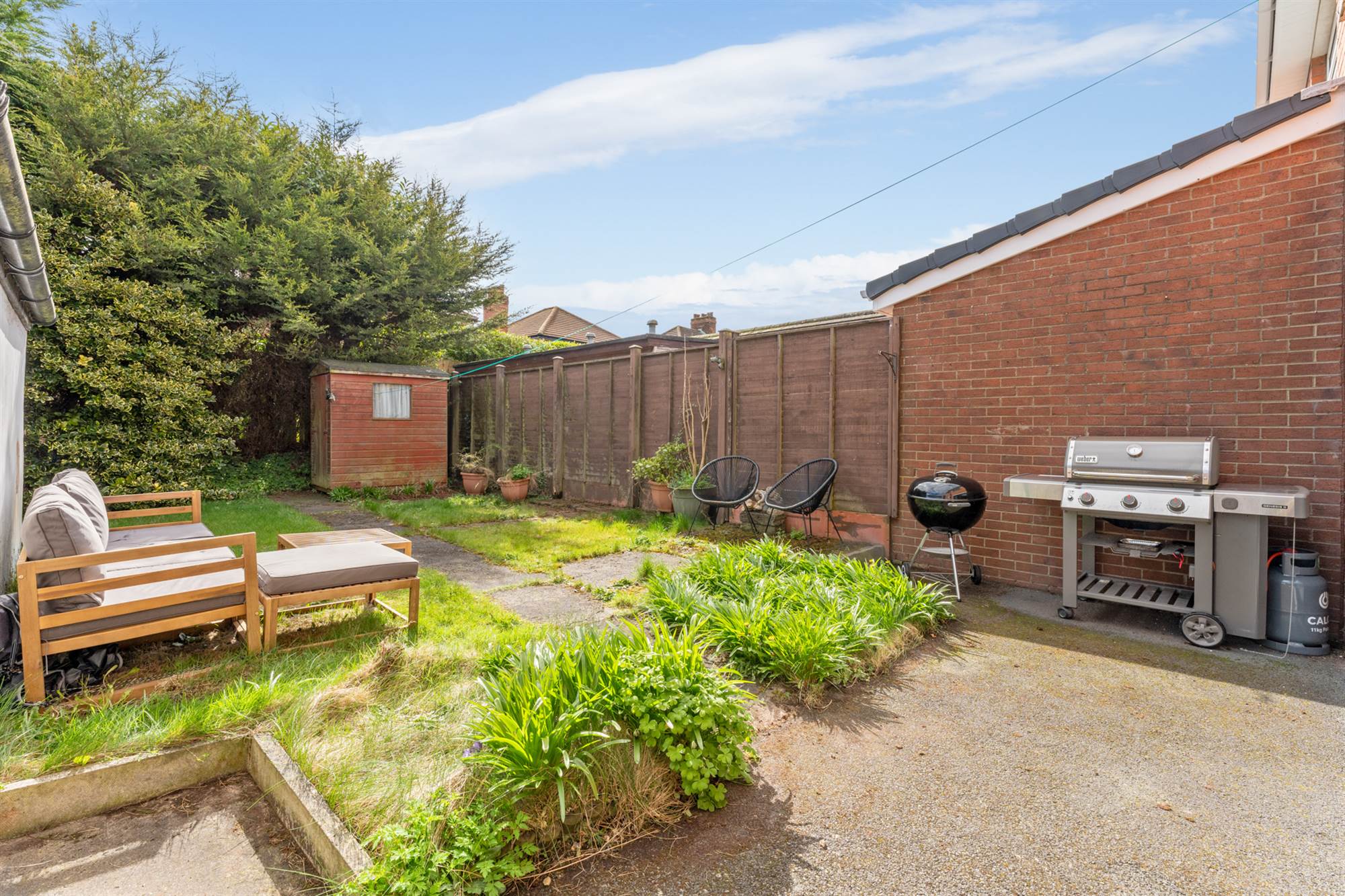 Appealing degree of privacy afforded by mature trees offering excellent degree of natural screening. Lawns. Timber shed.