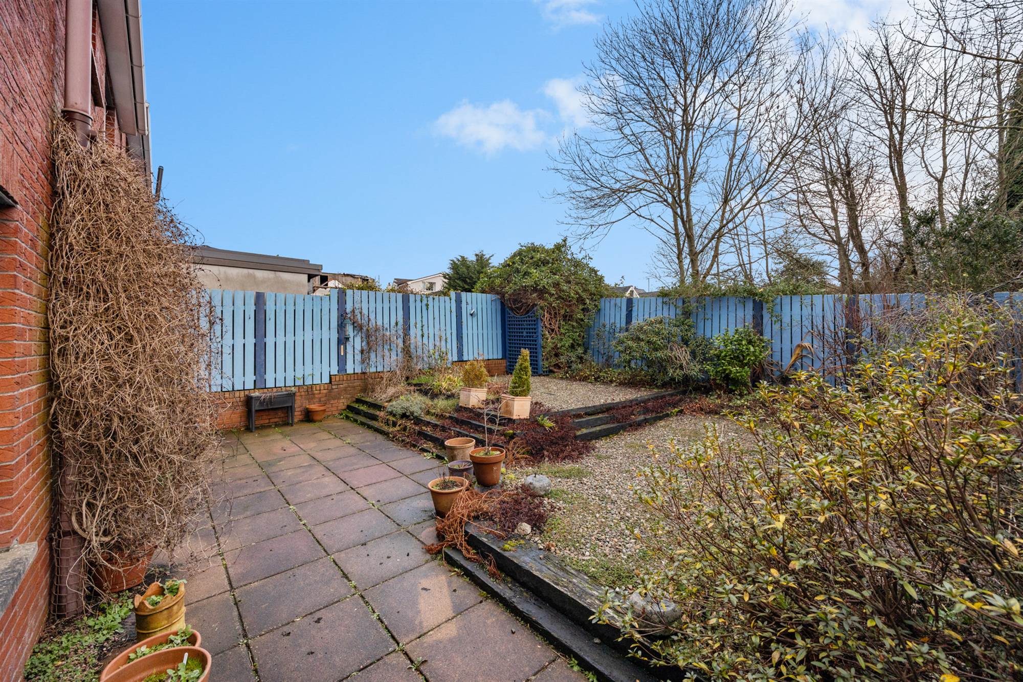 Southerly aspect and no houses directly behind. Patio and pebbled areas designed for ease of maintenance. Variety of mature plants and shrubs. Gate to side and front. Outside light and tap. Screened PVC oil tank.