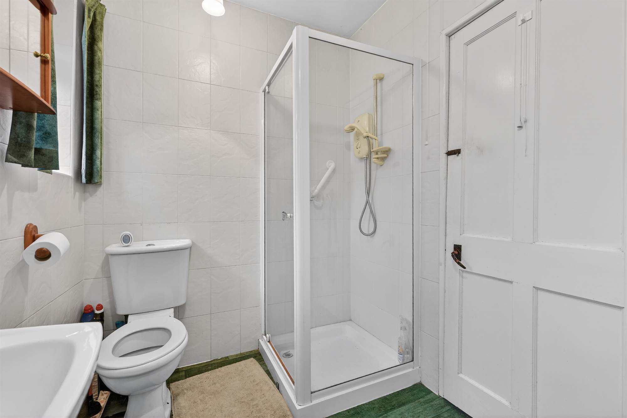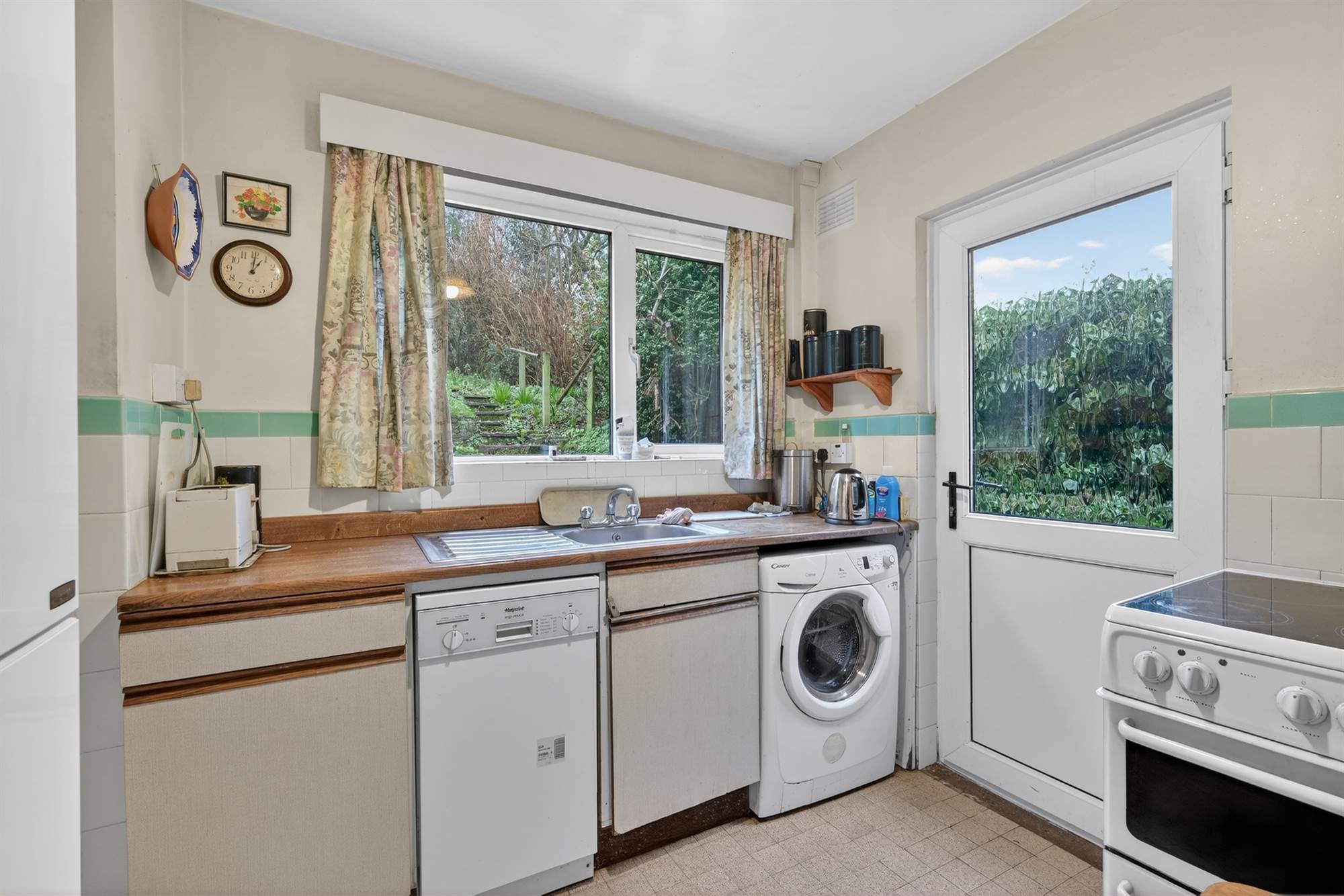 Range of high and low level units, laminate worktops, ceramic tiled floor, part tiled walls, plumbed for washing machine, uPVC double glazed rear door.