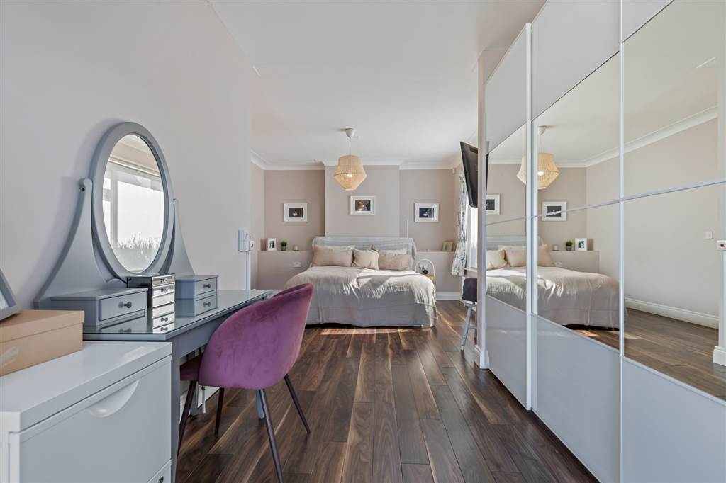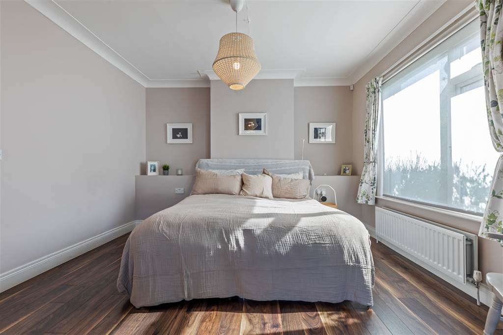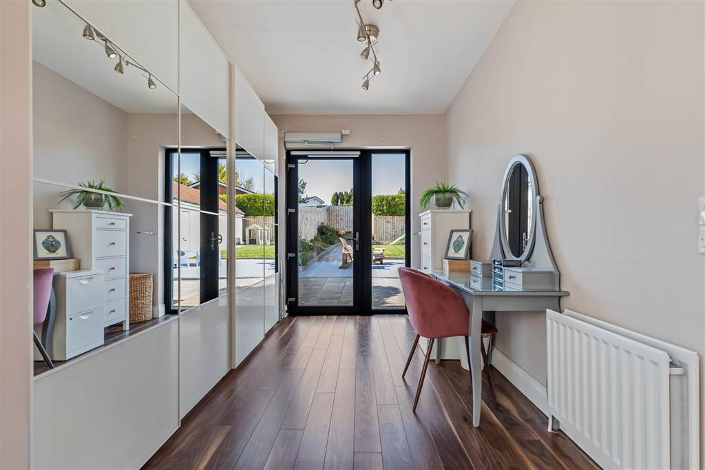 Fitted wardrobes, double panel radiator and uPVC double glazed door to rear.