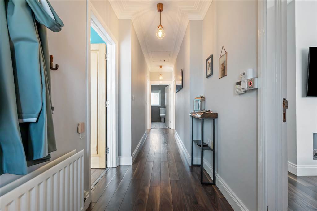 Laminate wood flooring provides access to the rear patio nad garden. A separate WC includes a vanity wash hand basin, low flush wc, single panel radiator and matching flooring.