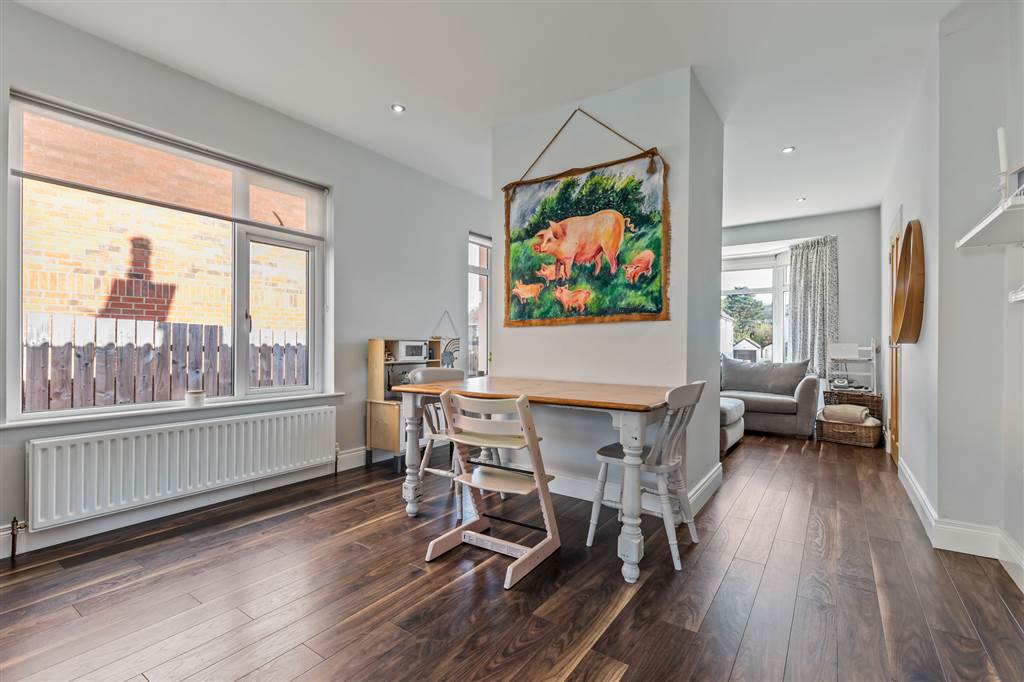 Into bay window, gas effect fire, laminate wood flooring, double panel radiator, open plan to dining area and kitchen.