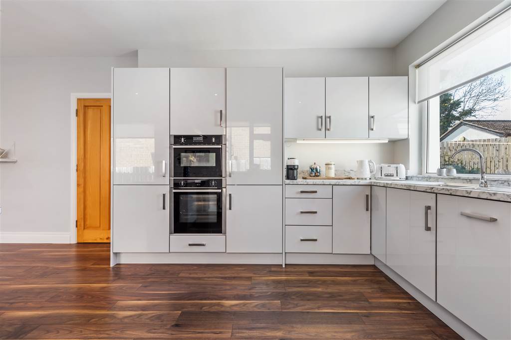 Designed with style and practicality in mind, offering a range of high and low level units with complementary work surfaces and breakfast bar. Inset single drainer sink unit with mixer taps, Integrated electrical appliances includes a fridge/freezer, dishwasher, 4 ring induction hob, built in conventional oven with microwave oven, The open plan dining area enhances the sense of space ideal for family meals and social gatherings.