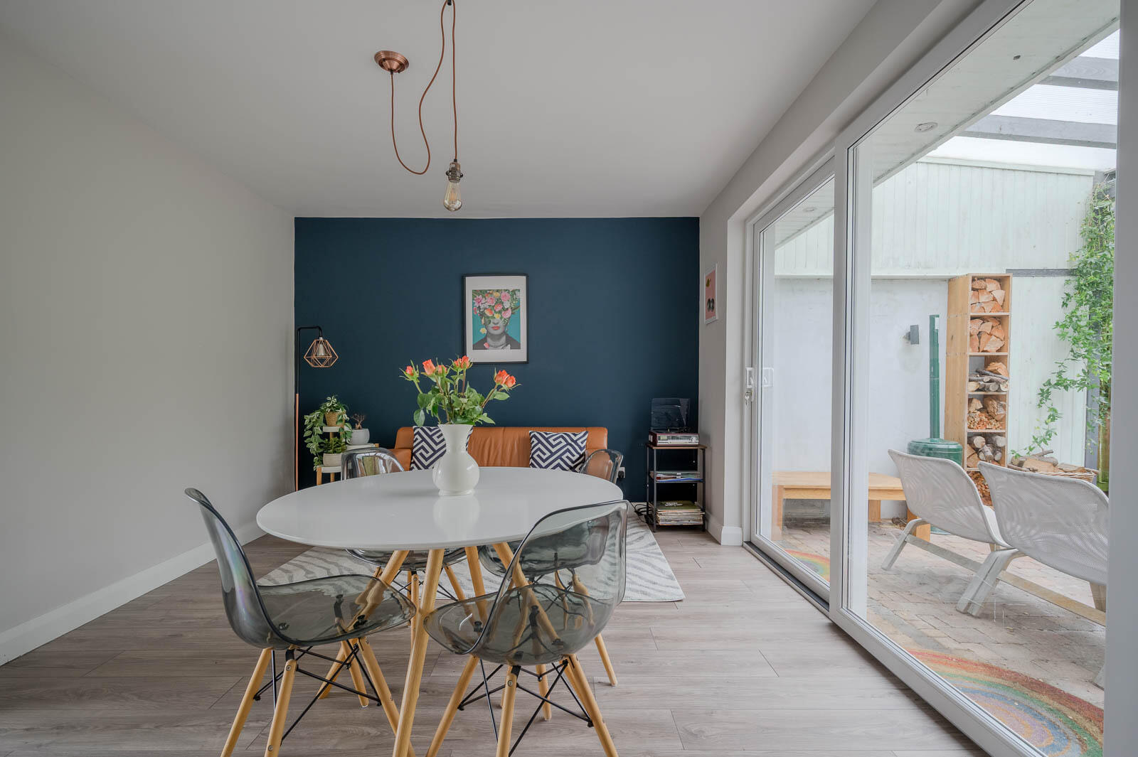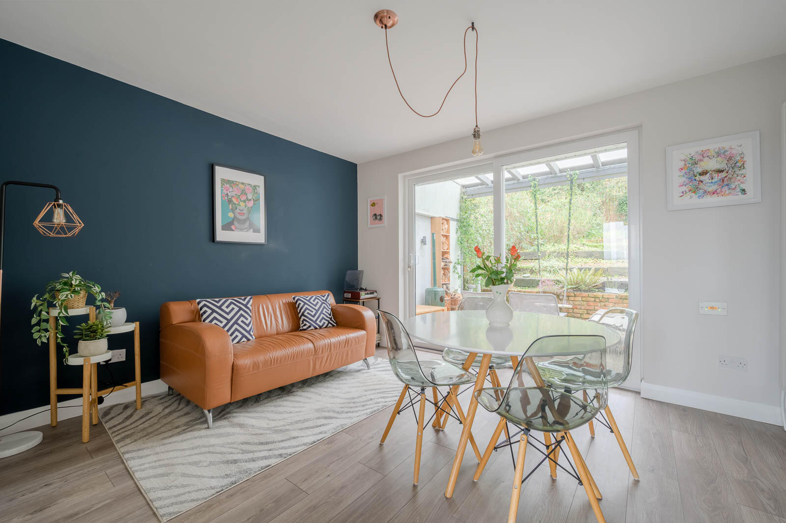 Laminate wooden floor, modern vertical radiator, uPVC double glazed sliding door to rear garden.