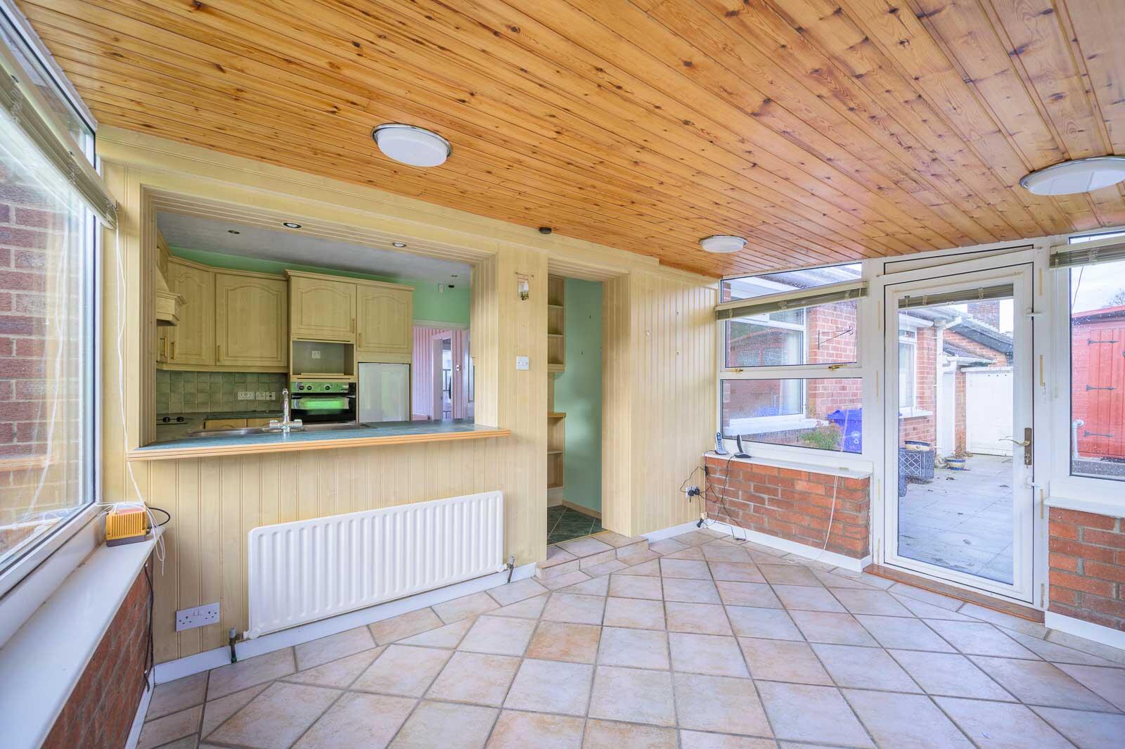 With pine tongue and groove ceiling, PVC double glazed back door to rear garden, tiled floor.