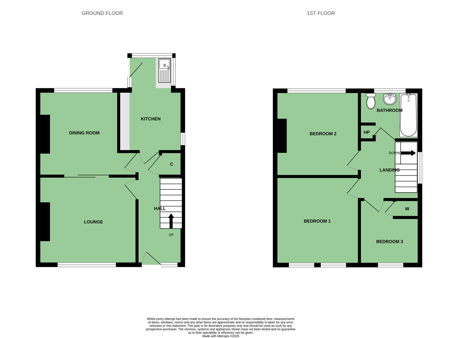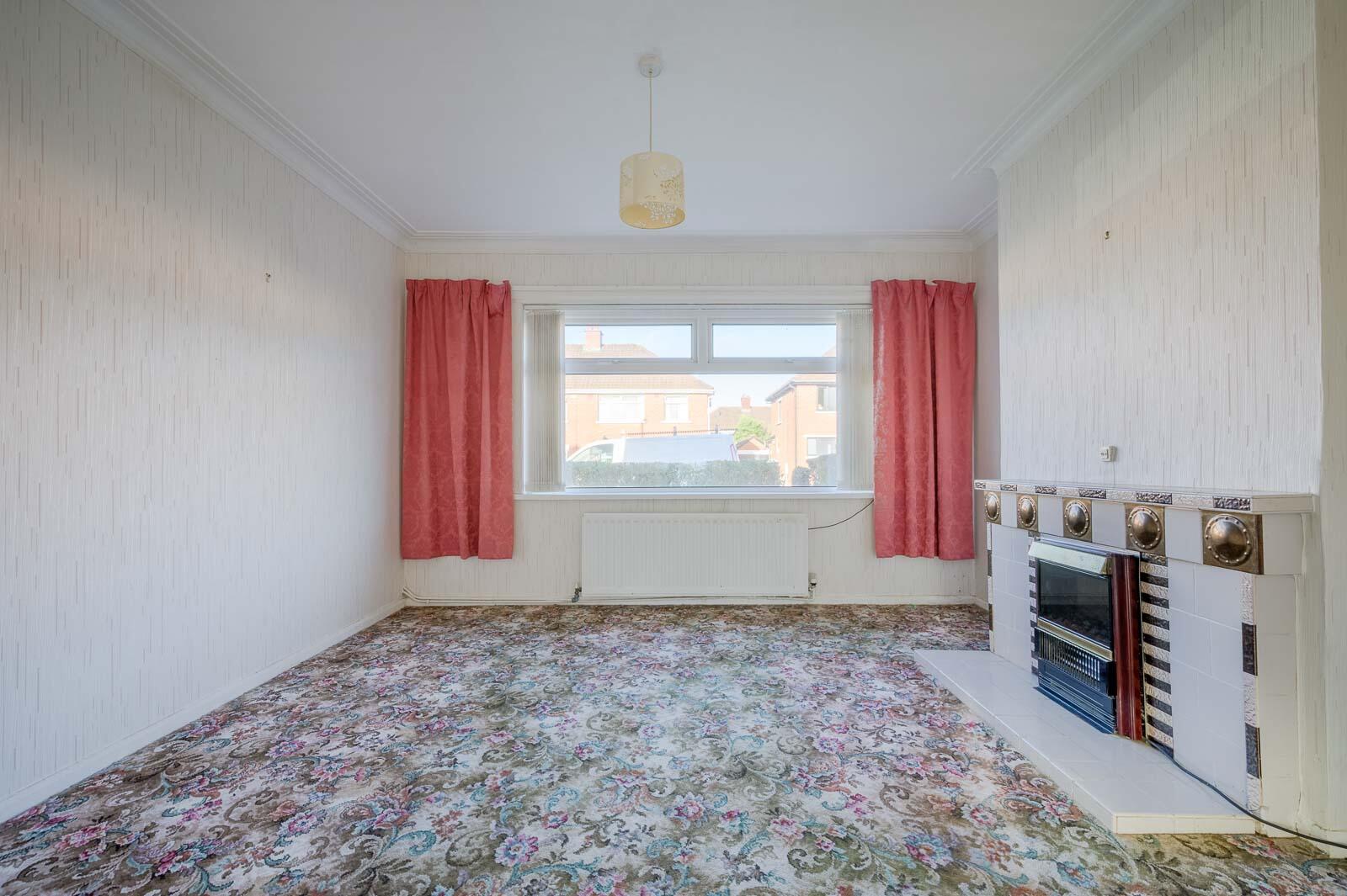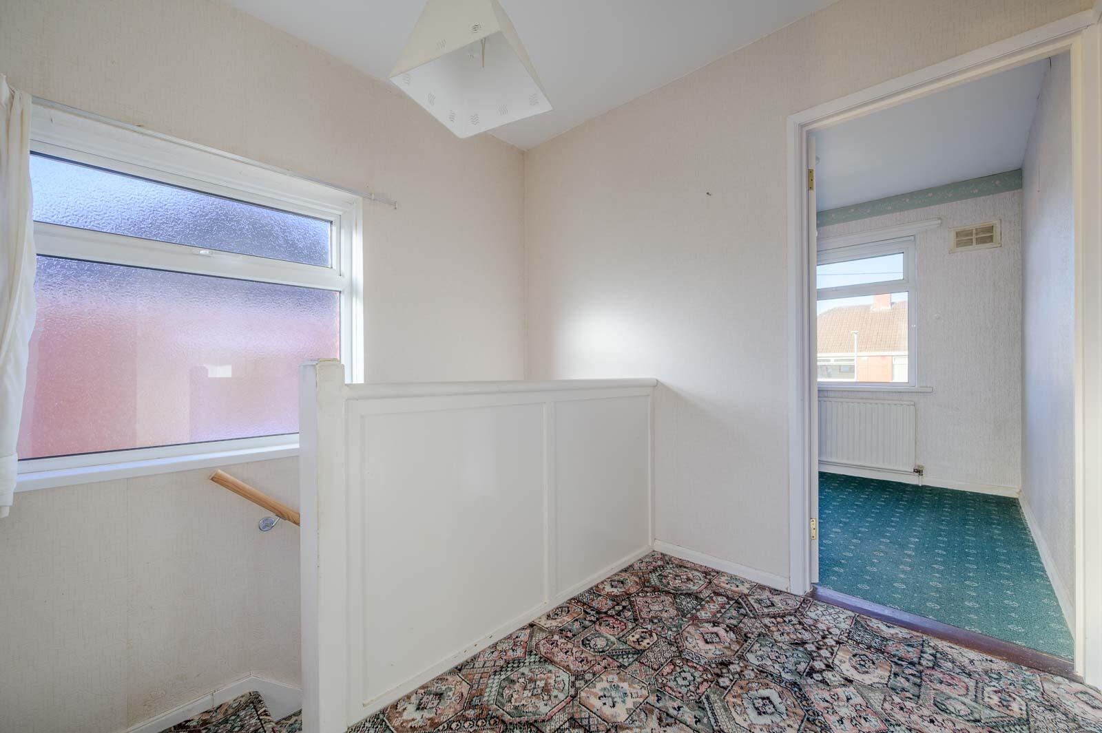 The ground floor comprises two bright reception rooms, including a front lounge with a large picture window and a second room that can serve as a dining area or additional living space. The kitchen is positioned at the rear of the property and provides direct access to the garden, offering scope for redesign and improvement.