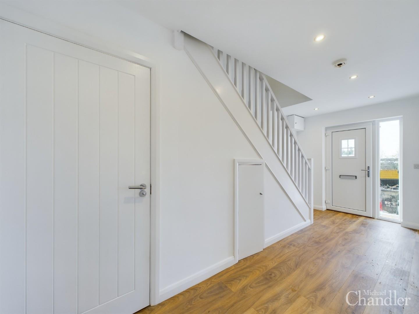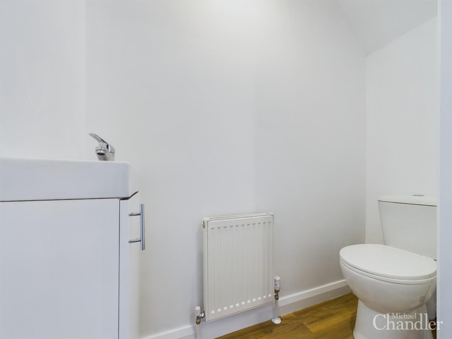 Downstairs comprises of a large welcoming hallway with a ground floor WC, a spacious lounge with feature fireplace and an impressive open plan kitchen dining area with French doors leading to patio area and private garden. Upstairs has three bedrooms, (two large doubles and one single) and a luxury four piece family bathroom suite.