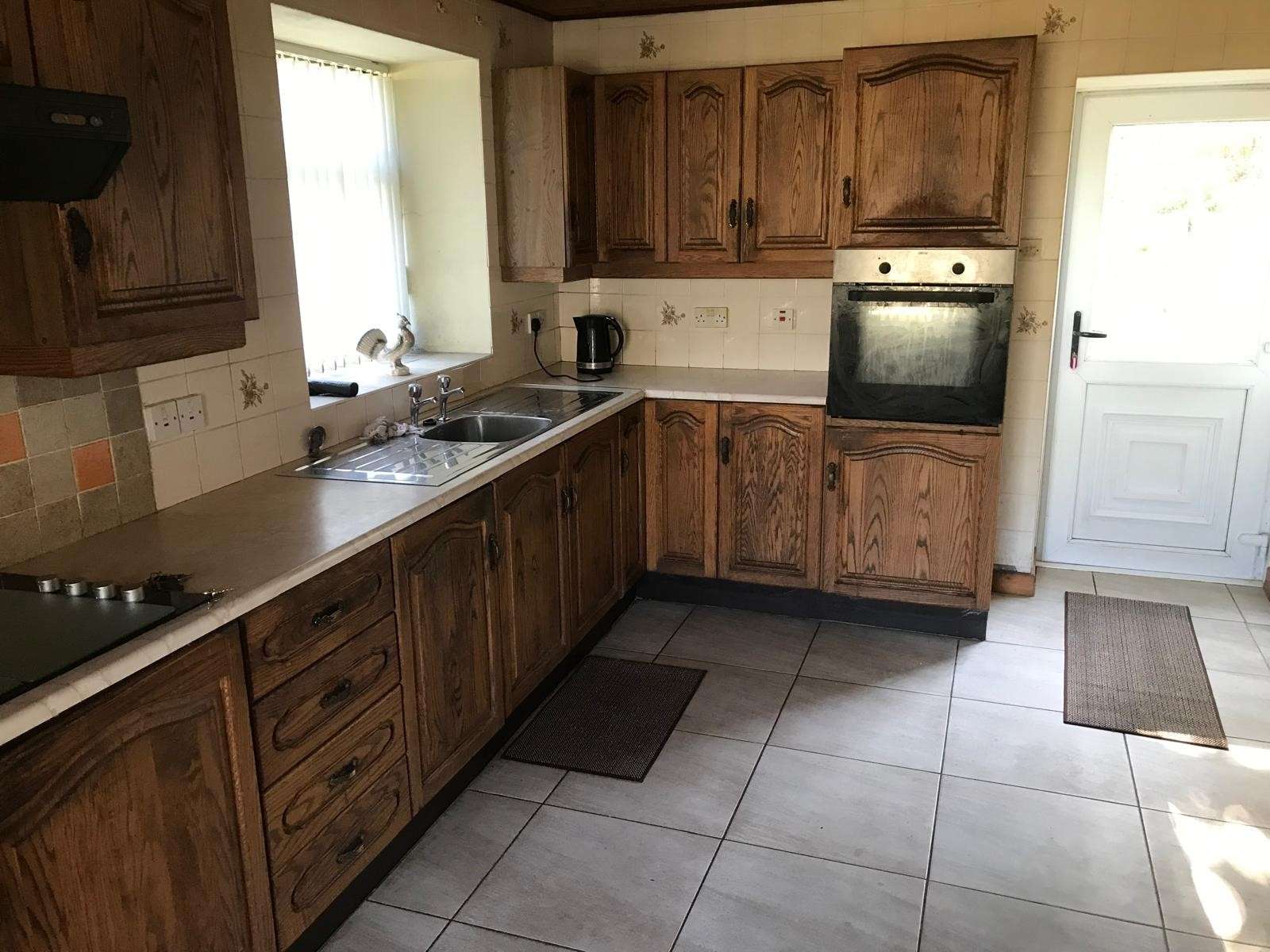KITCHEN-DINER: 5.1m x 3.0m fitted kitchen to include s/s double drainer sink, electric cooker and ceramic hob with overhead extractor fan. Fully tiled floor and splash-back. UPVC rear door.