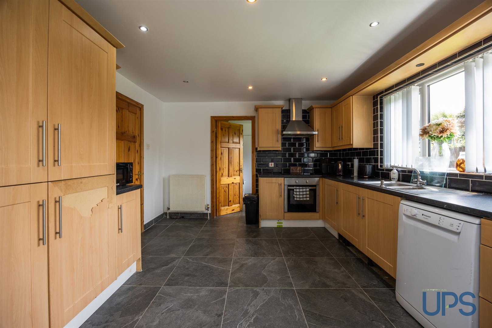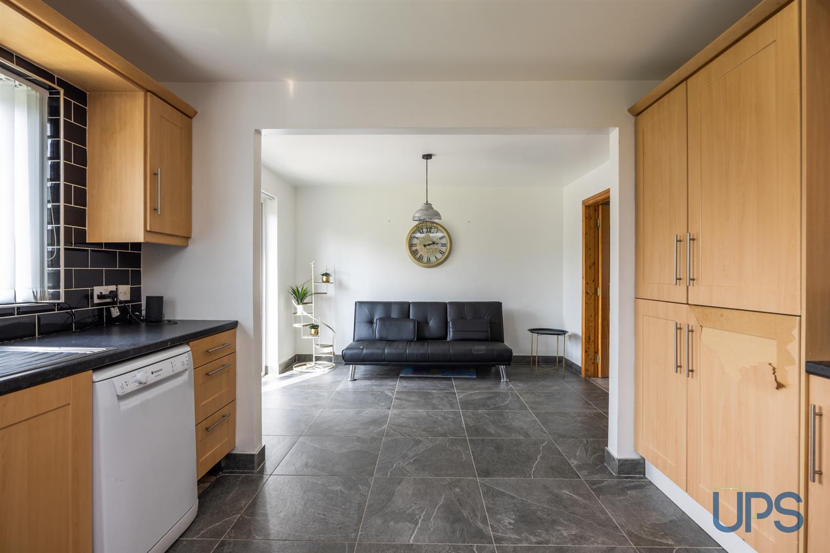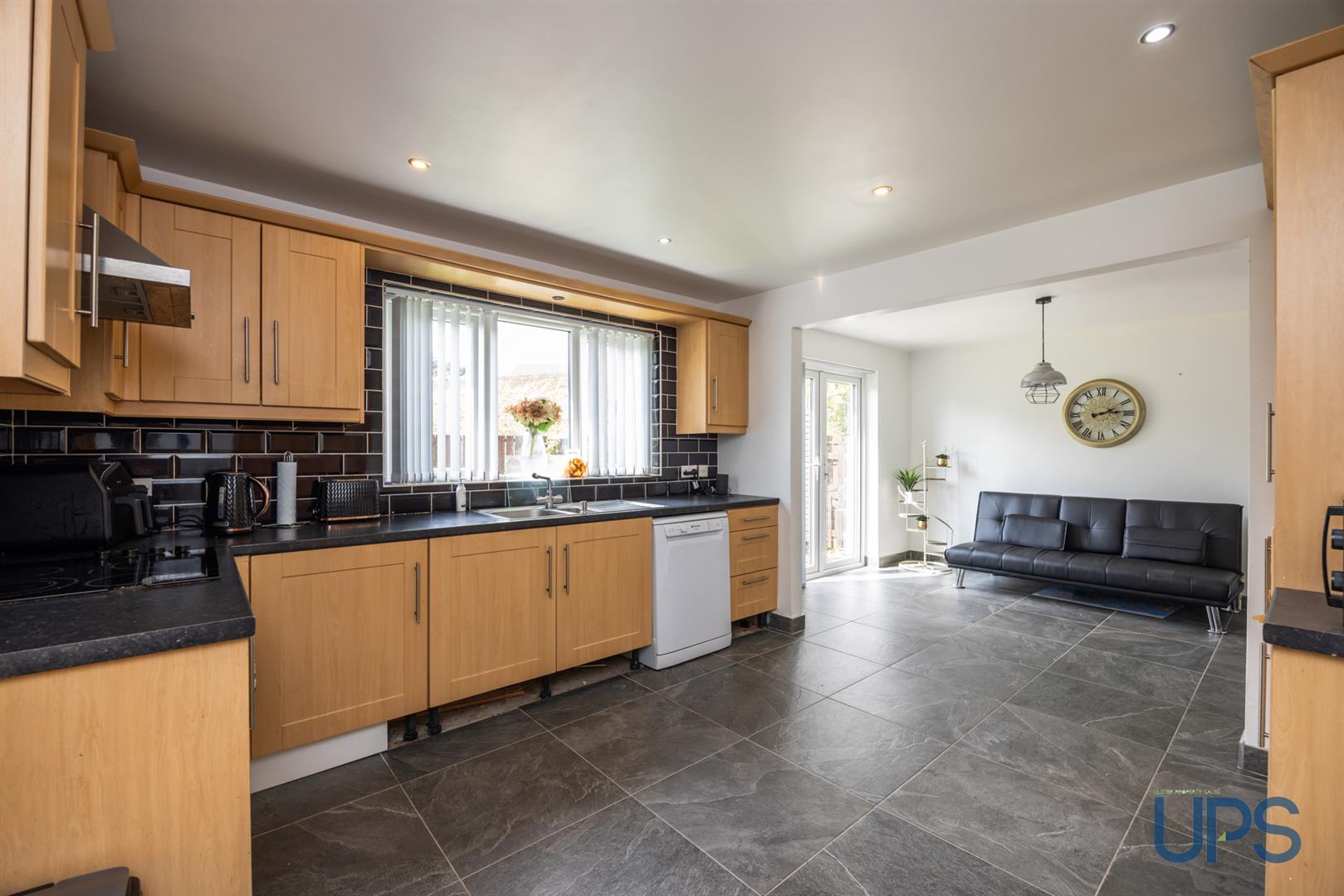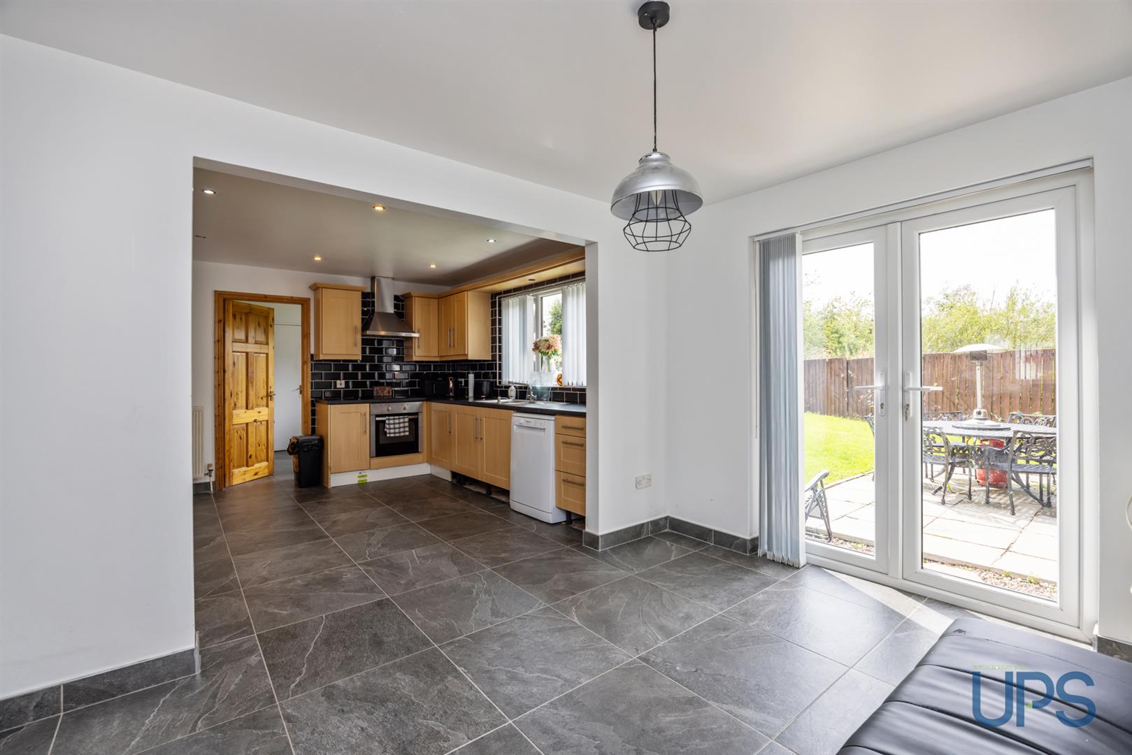 Kitchen open plan to dining room with access to a separate utility room that leads to the integral garage.