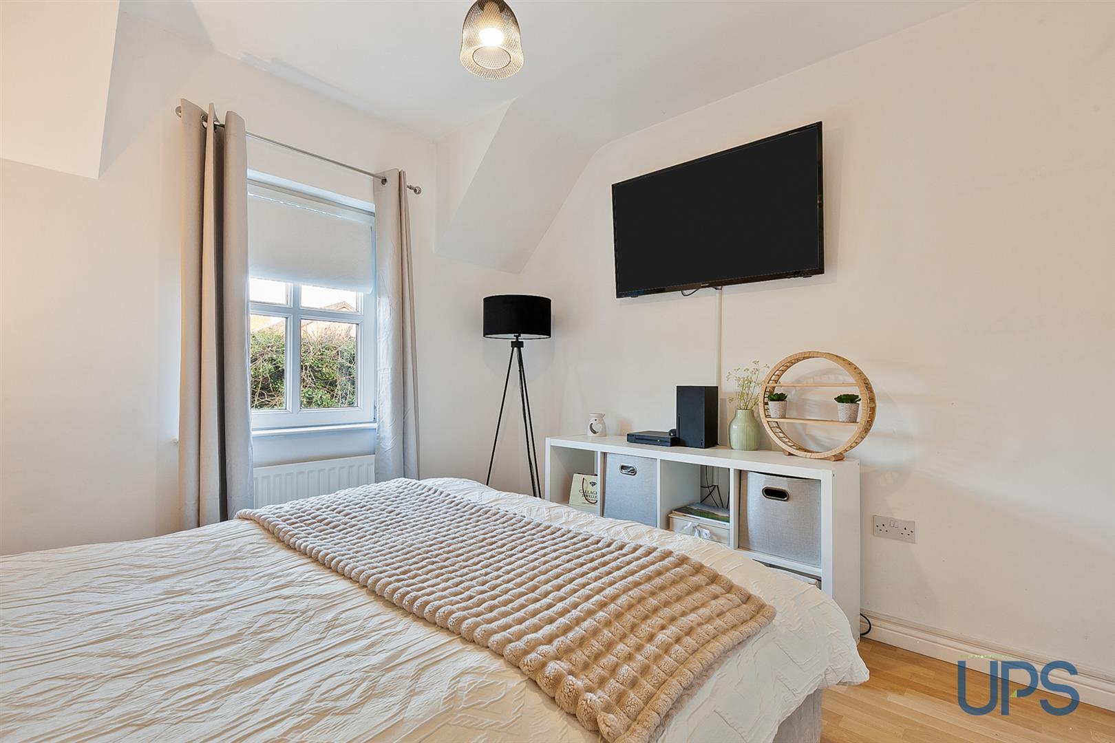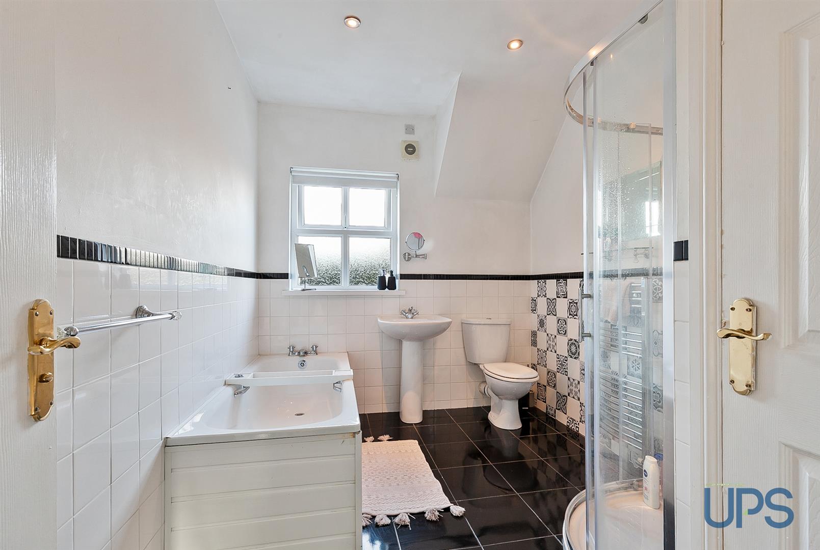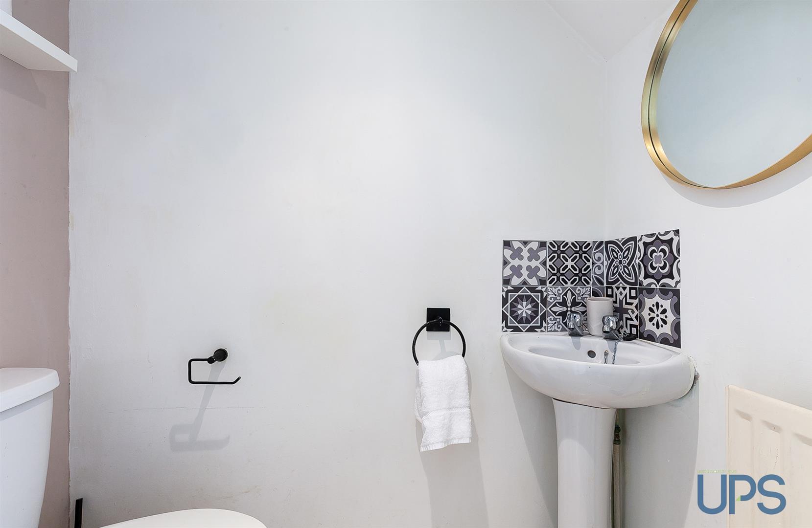 The first floor comprises three well-proportioned bedrooms and a white bathroom suite, complete with a separate shower cubicle and recessed spotlights.