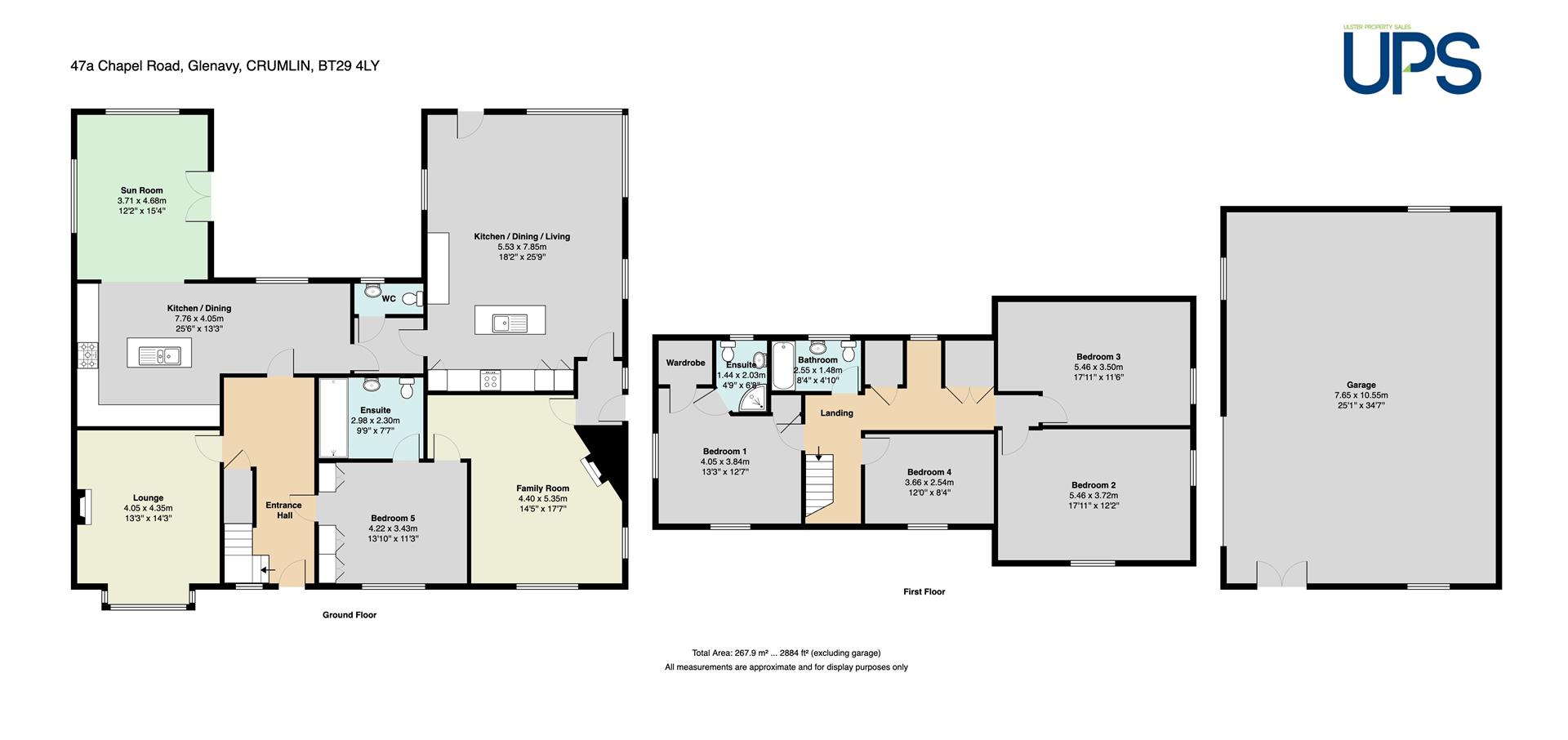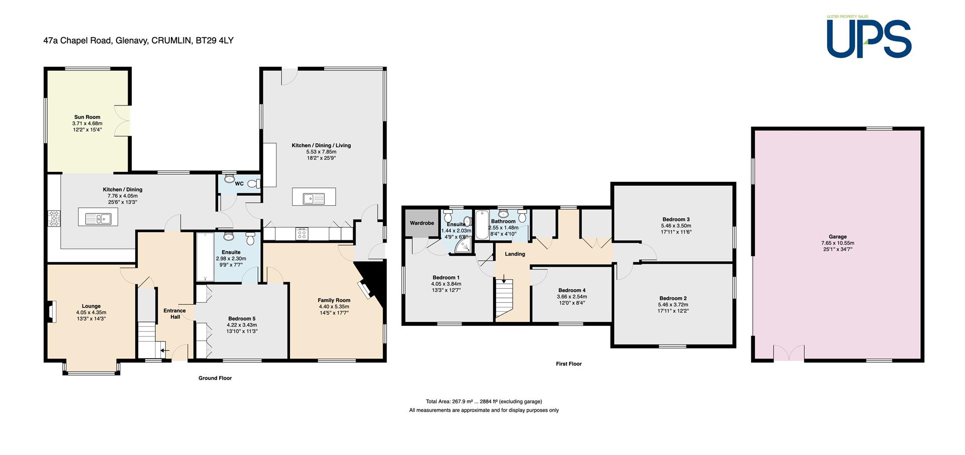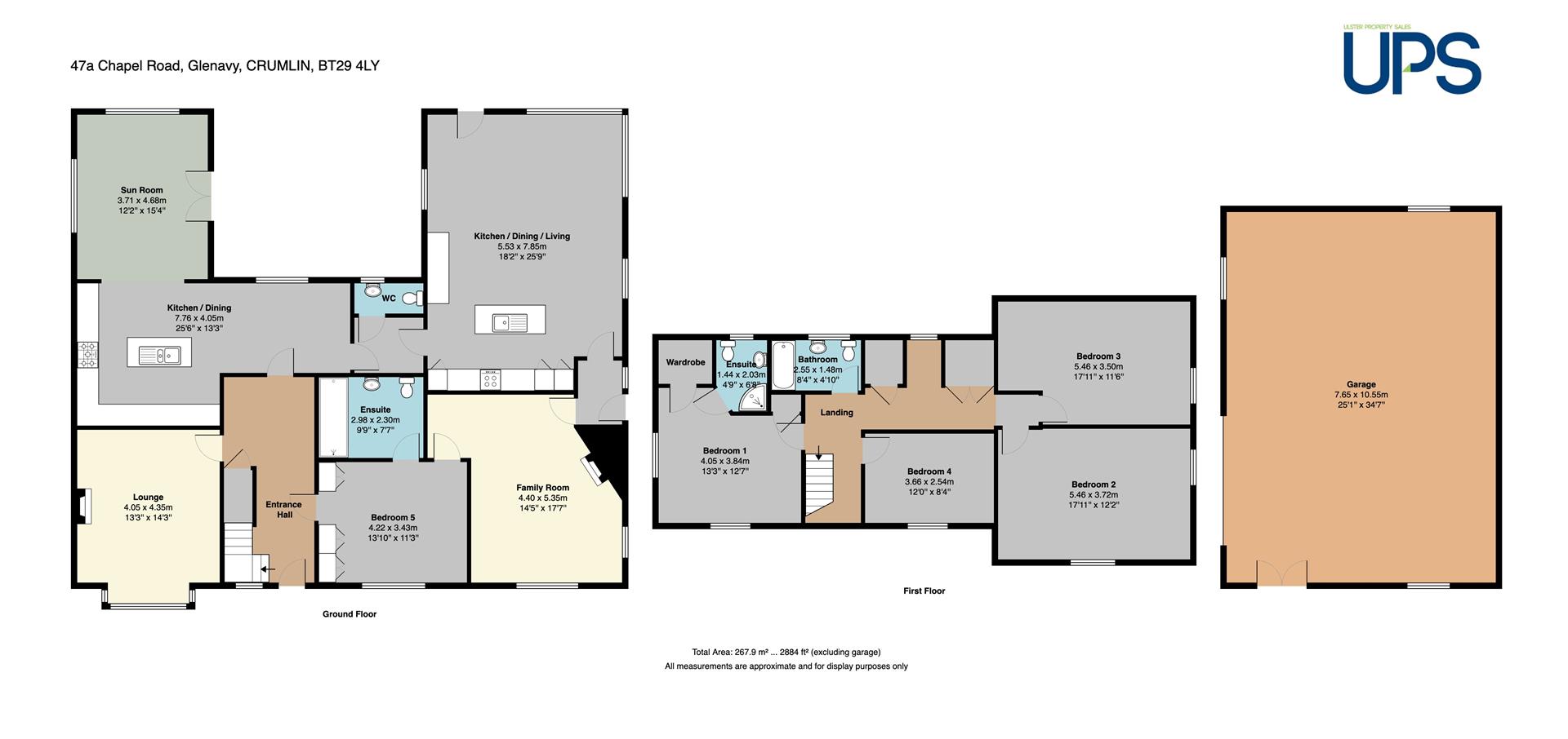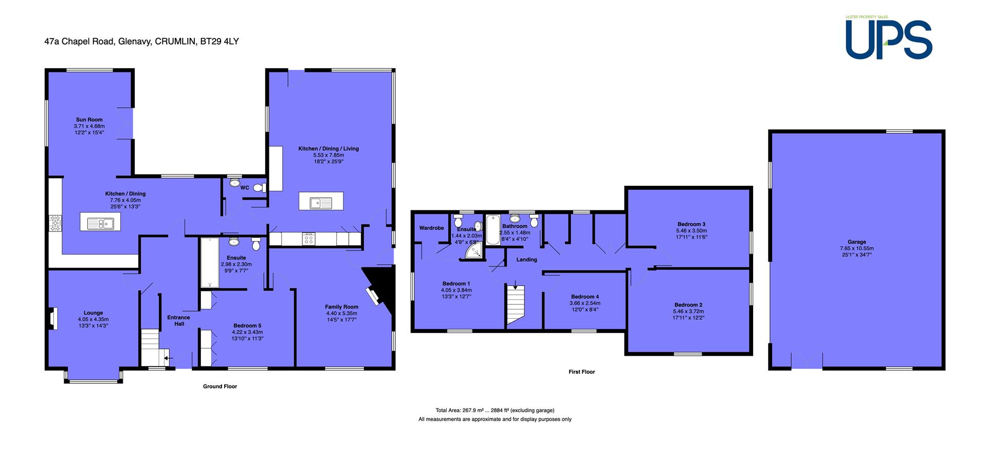 The property offers exceptional space, flexible and versatile accommodation across 2884 Sq / ft to incorporate a Self contained Annex with independent access that offers multi generational living. Five comfortable double bedrooms. Principle bedroom with ensuite shower room and walk-in dressing wardrobe. Four separate reception rooms to include an extended Sun room with double patio doors. Upvc double glazed windows / Doors / Eaves and fascia also in Upvc. Oil fired central heating system. Feature floor coverings and internal doors. Downstairs W.c. Luxury fitted kitchen with casual dining area and separate Utility room linking to ( Annex Accommodation ) living /dining / kitchen / living space. Bedroom 5 with ensuite shower room. Luxury white shower suite. Upvc double glazed windows, oil fired central heating system. Downstairs W.c. Large detached double garage / Workshop with Pvc Roller door. Mature landscaped gardens with feature gravel driveway and ample car parking.