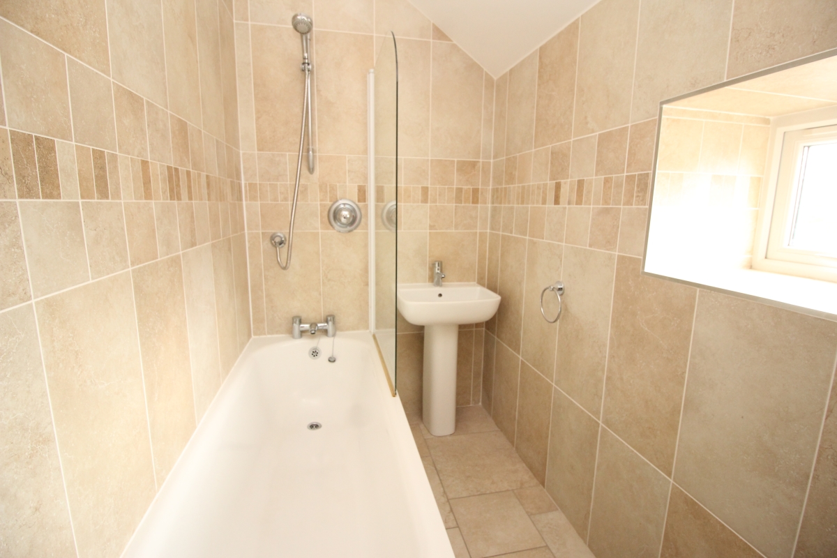 Family Bathroom, Fully Tiled. Bath With Shower Over, Wash Hand Basin, WC