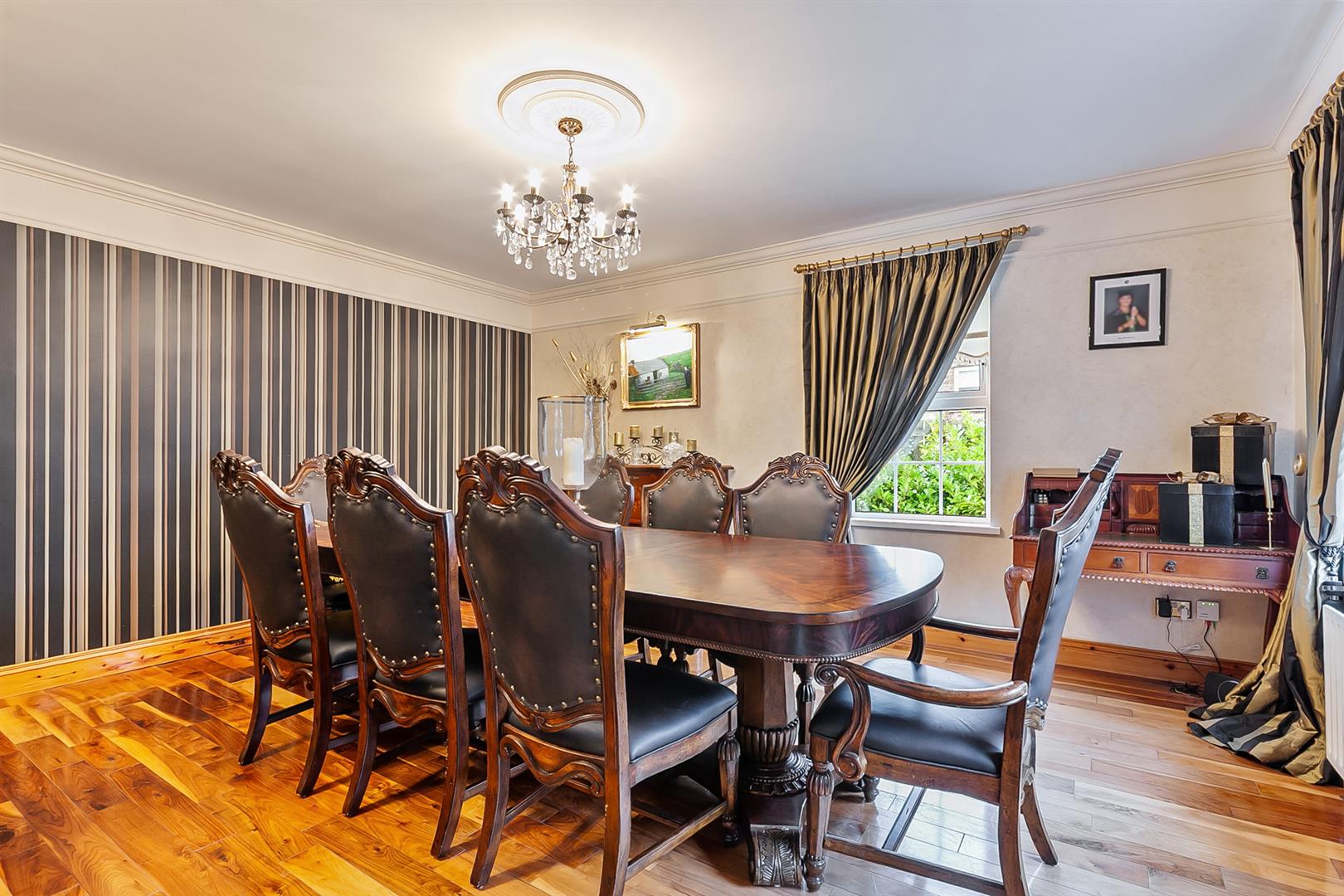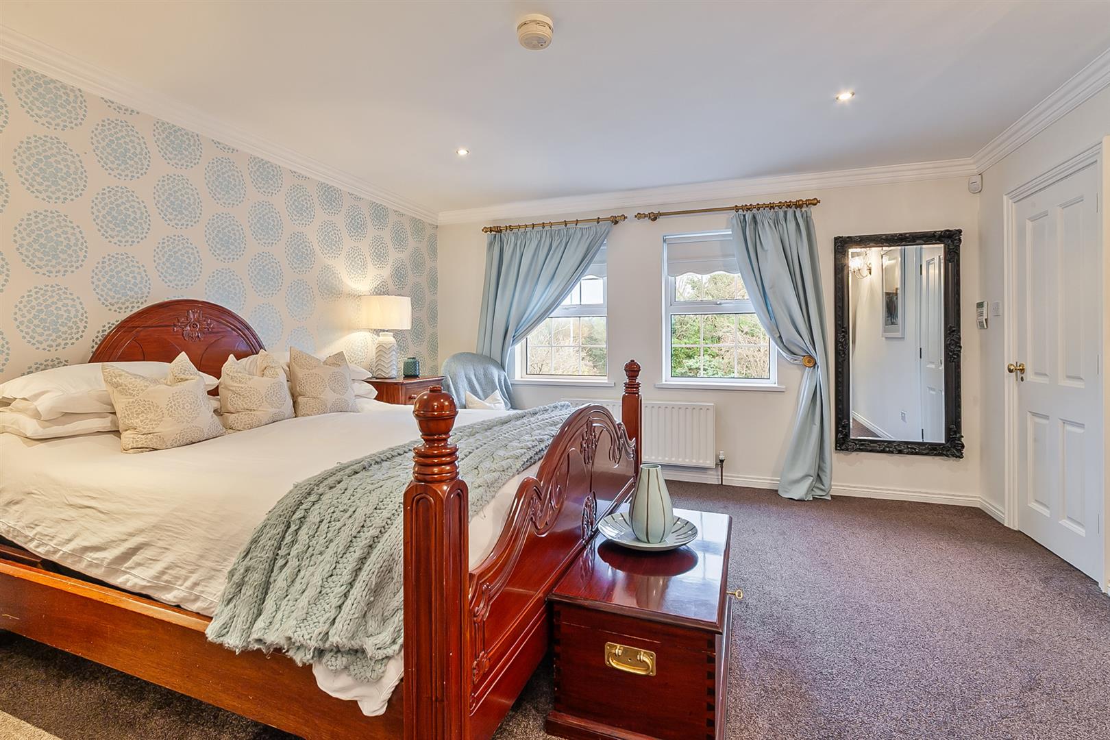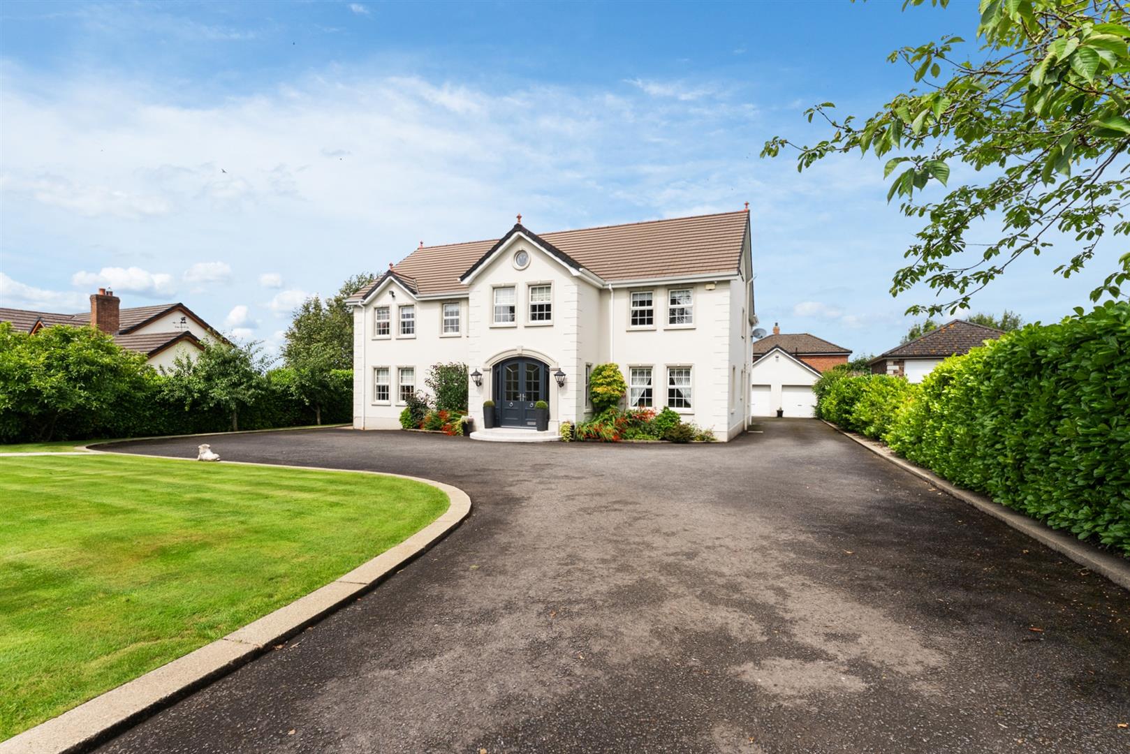 Immaculately presented, detached multi-generational family home extending to c.4,000 sq ft plus matching detached double garage, featuring a spacious main residence encompassing six bedrooms and a plethora of separate reception rooms, designed with a flexible upper floor suitable for a private, self-contained top-floor annex, situated on a beautifully landscaped site, conveniently located on the periphery of Crumlin town.
