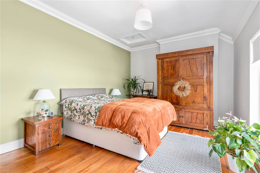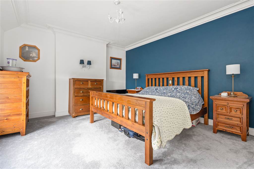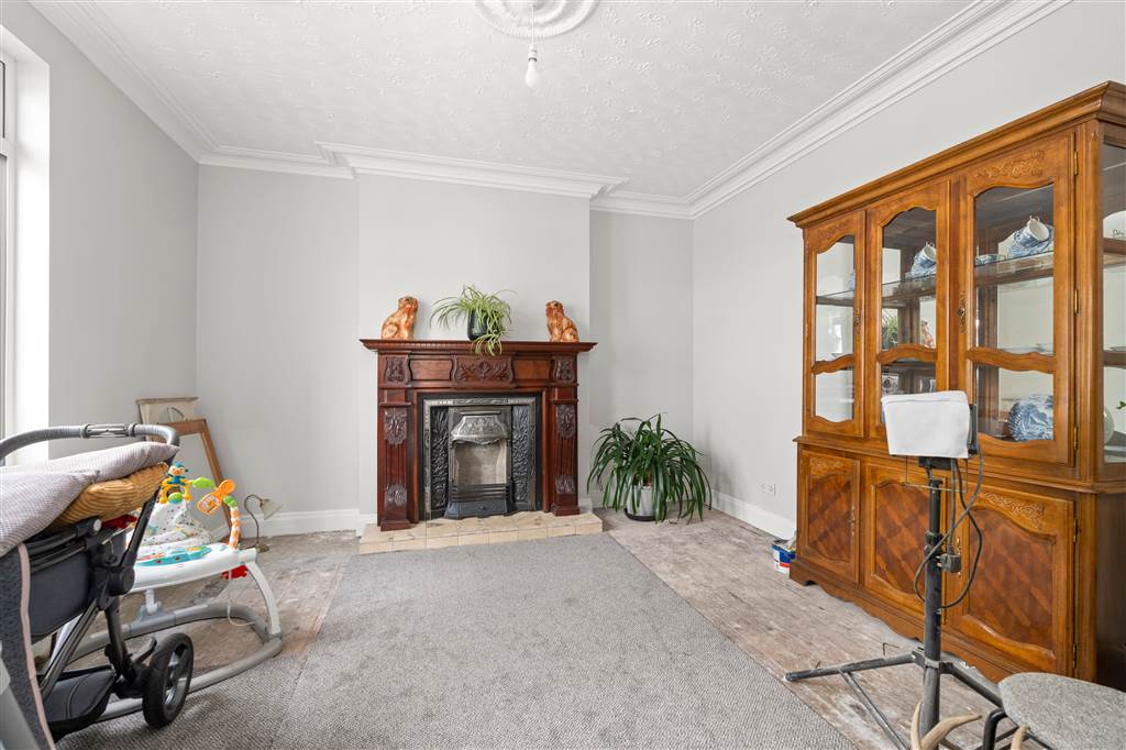 With cast-iron fireplace to tiled hearth, wooden surround and mantle. Coving to ceiling. Ceiling rose. Wooden flooring.