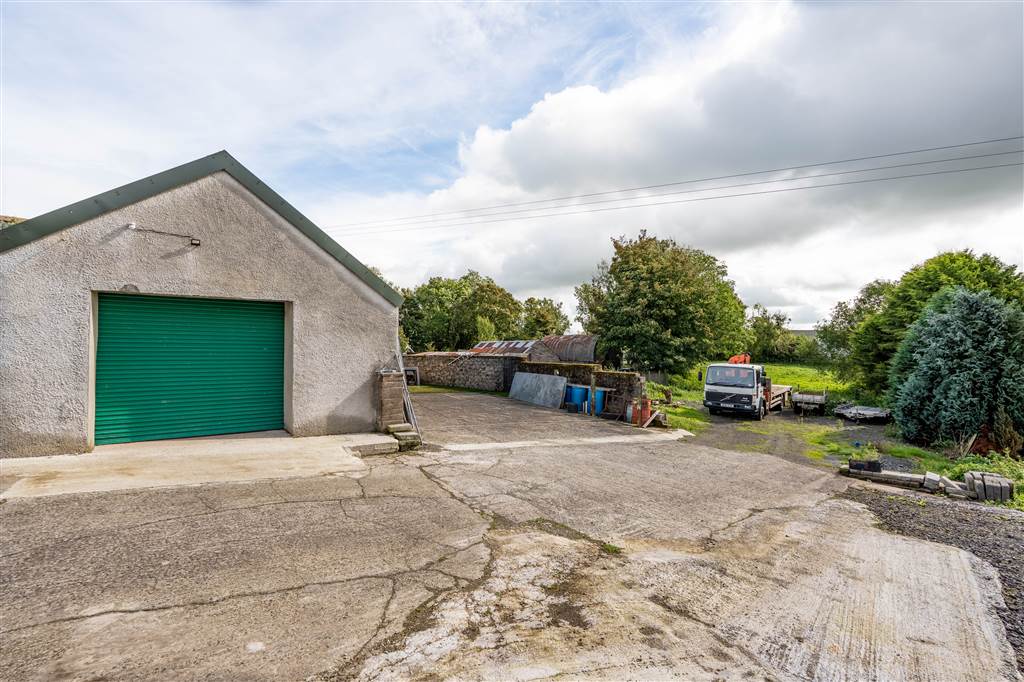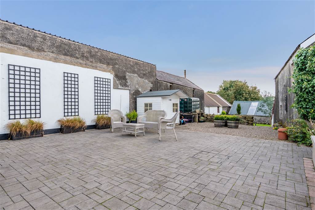 With gated access leading to spacious concrete yard at side of property offering ample parking. A range of outbuildings ideal for storage, workshop use or a variety of other purposes. Two-storey outbuilding offering further flexibility, with ground floor storage areas, stable block and external steps leading to an upper level, perfect for additional storage or potential conversion, subject to relevant permissions. Large detached garage with a roller door. Paddock to rear ideal for equestrian use or other outdoor pursuits. Beautifully maintained surrounding gardens with lawn areas bordered by planted shrubs and enclosed by natural rockwork and a traditional stone wall. Steps from the lawn to a decorative pebbled area and a spacious paved patioâideal for outdoor entertaining. Excellent privacy to rear. Outside hot & cold tap. Outside lights.