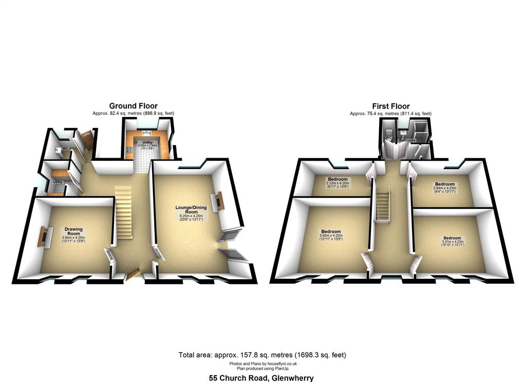 Total area: approx. 157.8 sq. metres (1698.3 sq. feet)