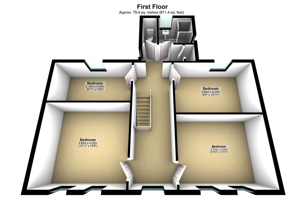BEDROOM (3): 13' 9" X 6' 11" (4.20m X 2.12m)