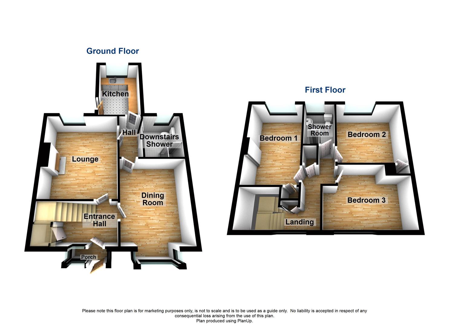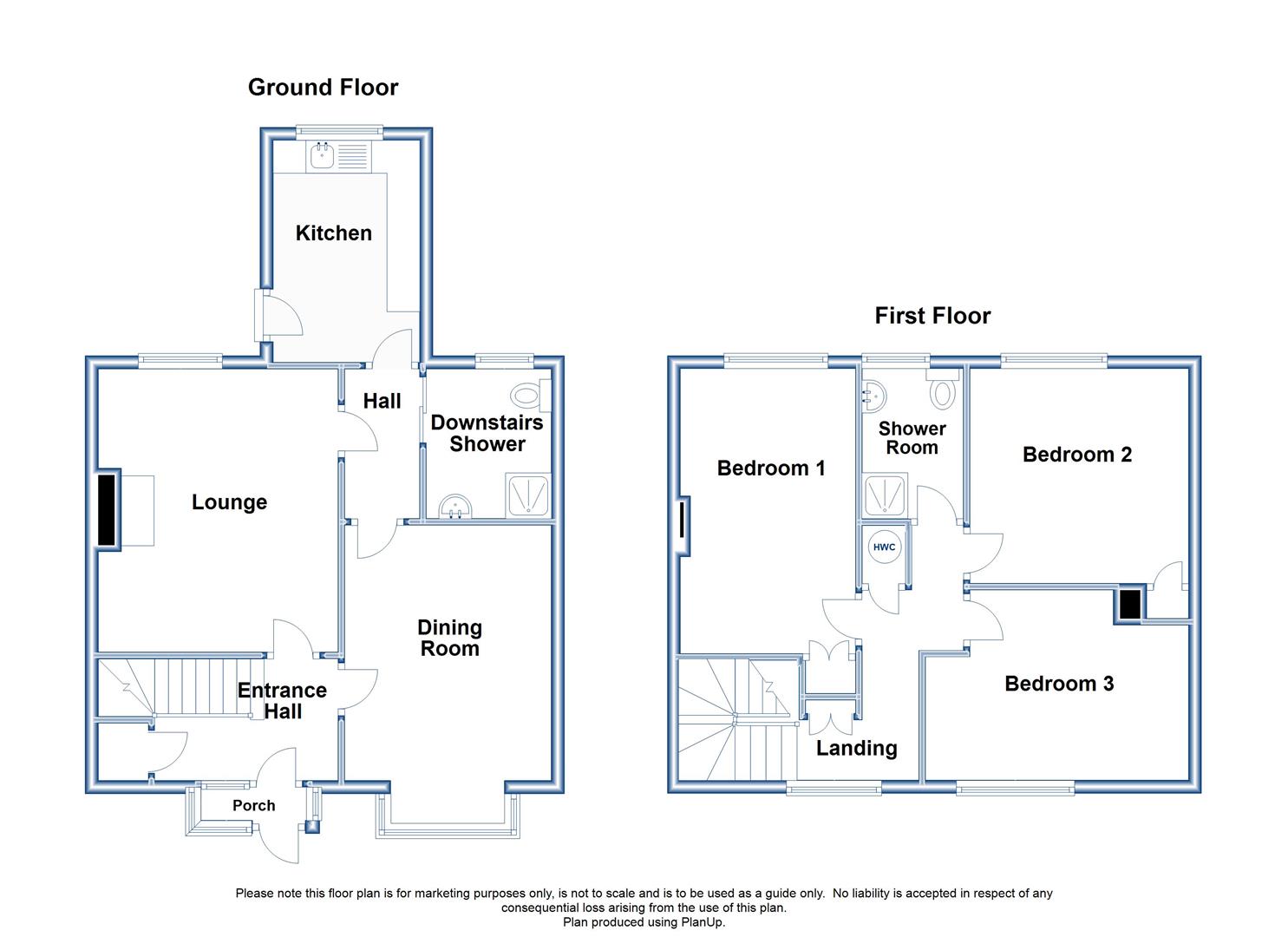 First floor shower room with additional shower room on the ground floor