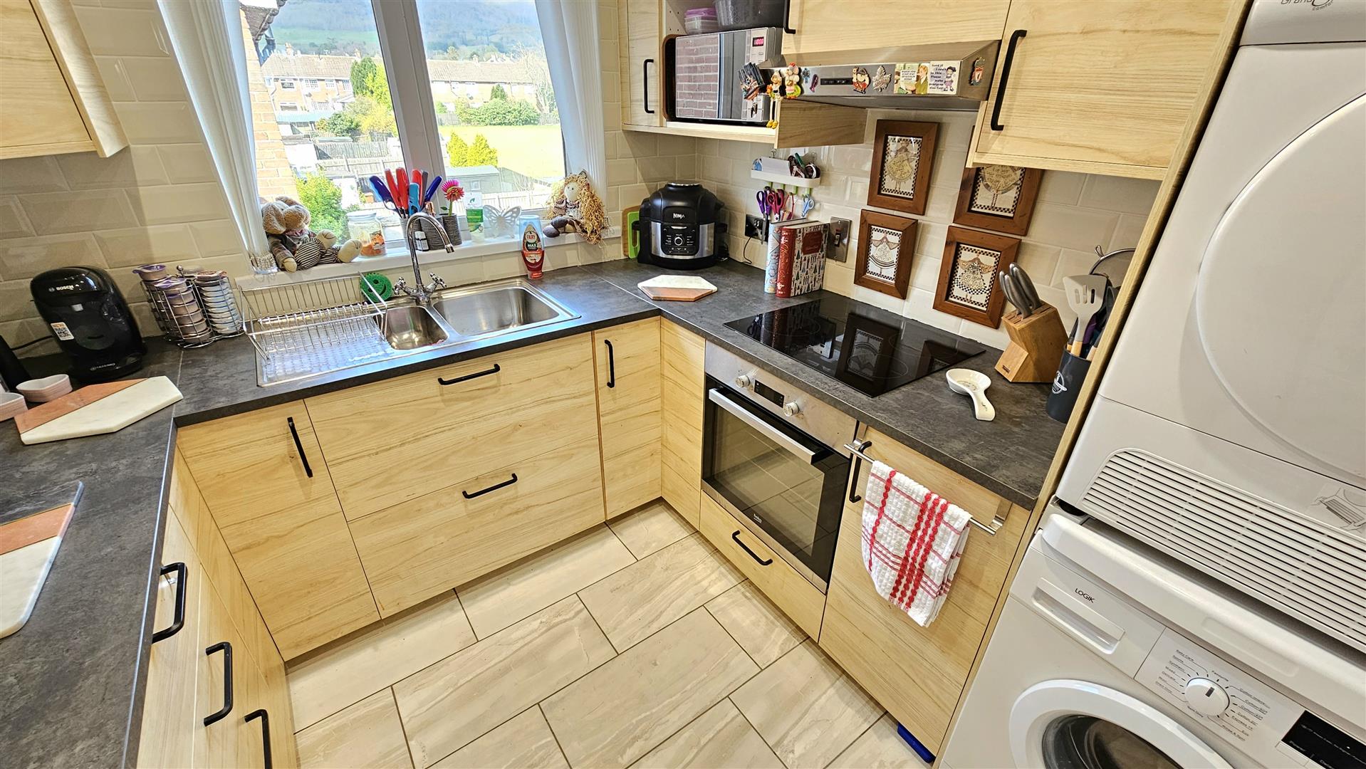 Double glazed window to rear aspect, excellent range of high and low level units with contrasting worktops, inset 1.5 bowl stainless steel sink and drainer with mixer tap over. Built in stainless steel over and 4 ring ceramic hob with extractor fan over, plumbed for washing machine, ceramic tiled floor.