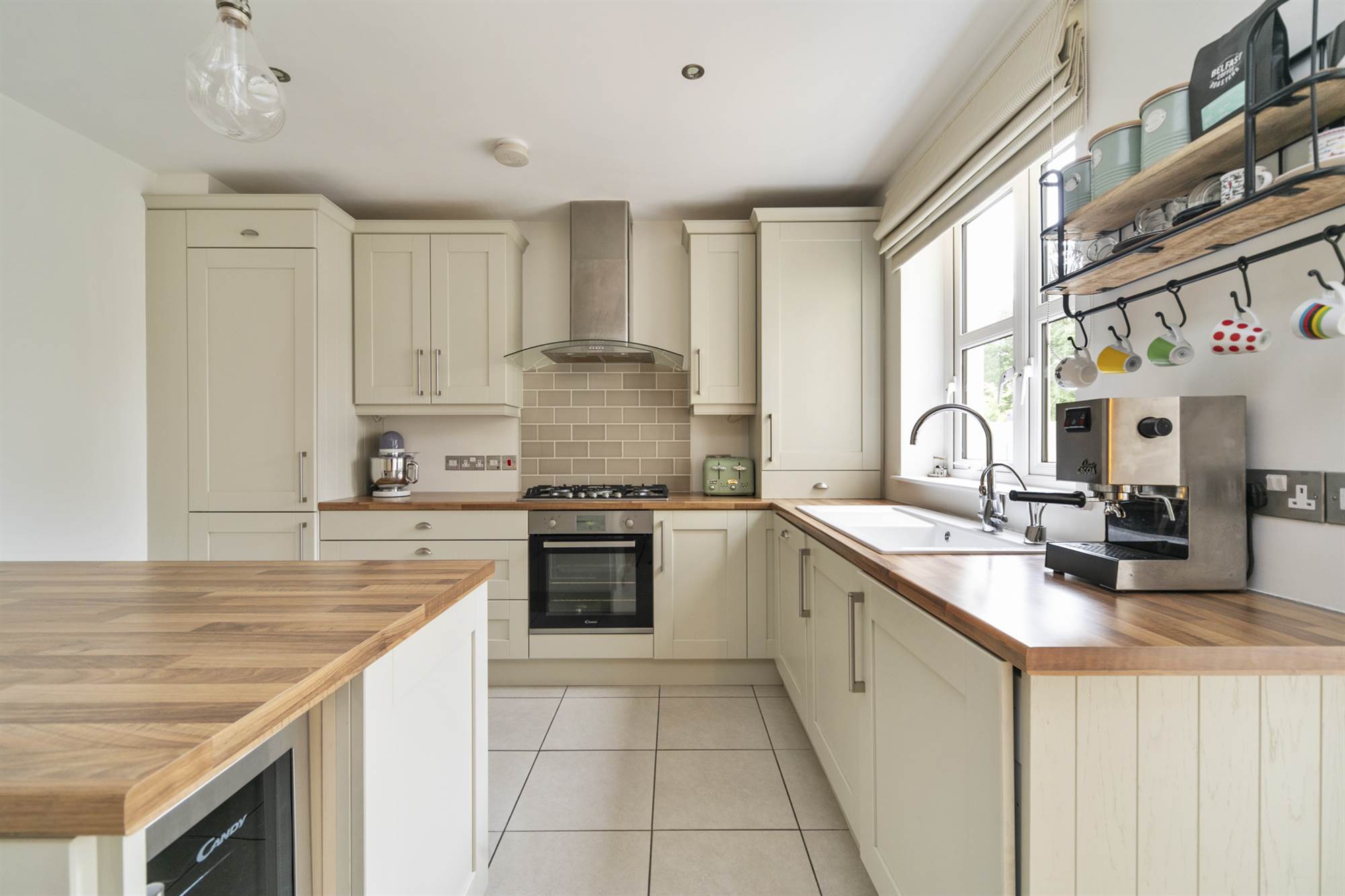Range of high and low level units. Integrated fridge/freezer. 'Candy' electric oven. 5 ring gas hob. Stainless steel and glass extractor fan. 'Hoover' integrated dishwasher. Blomberg integrated washing machine. Ceramic sink unit with hot water tap. Kitchen island with storage and electrics for a free standing wine cooler. Ceramic tiled floor. Low voltage spotlighting. 'Vaillant' gas boiler.