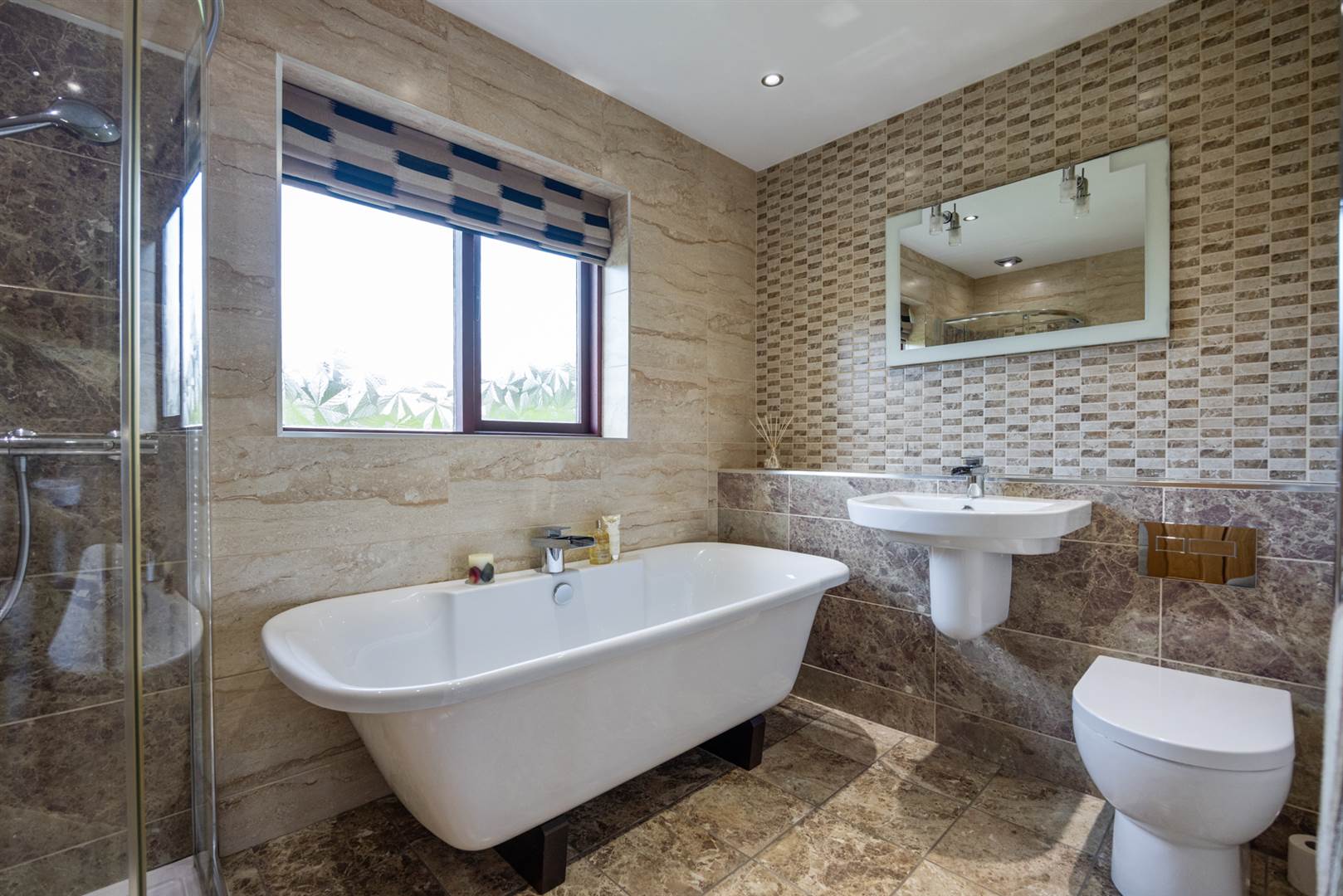 Luxury main bathroom including a free standing bath and separate shower cubicle