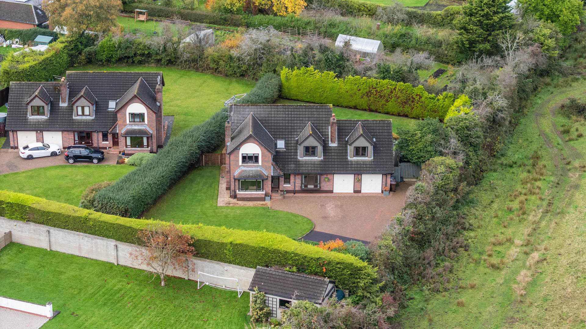 Spacious and private site extening to c. 1/3 acre which sides onto the open countryside and benefits from views towards Knockagh.