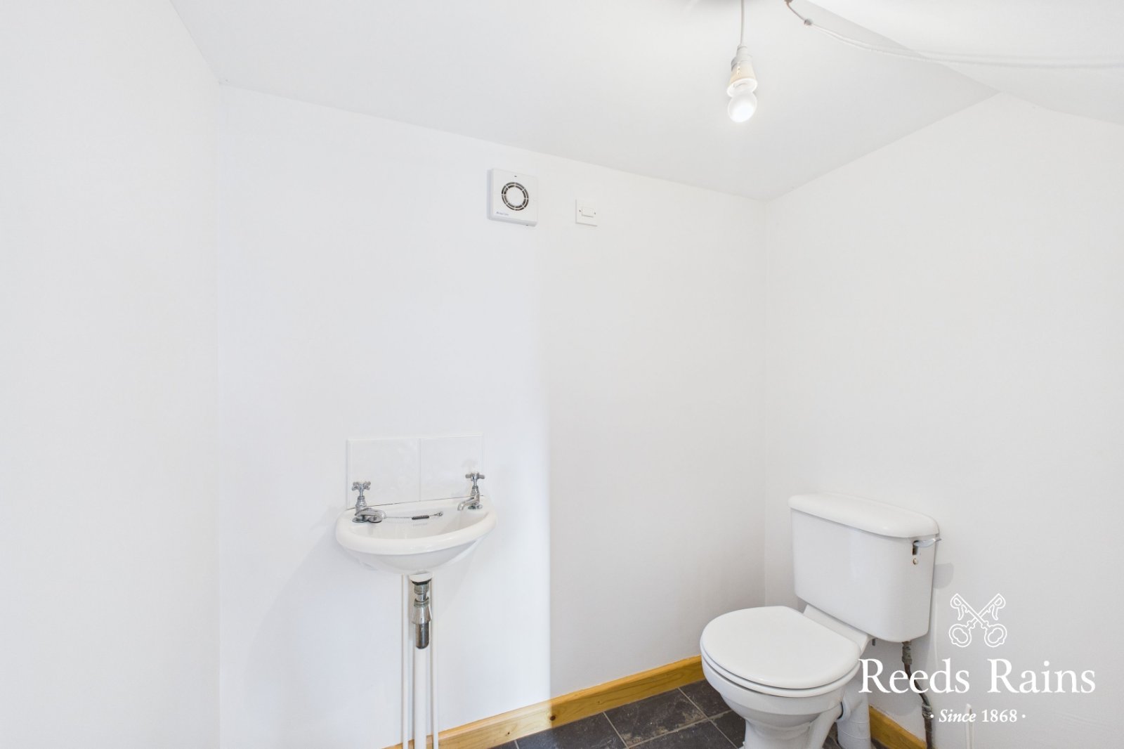 WC and wash hand basin. Tiled floor.