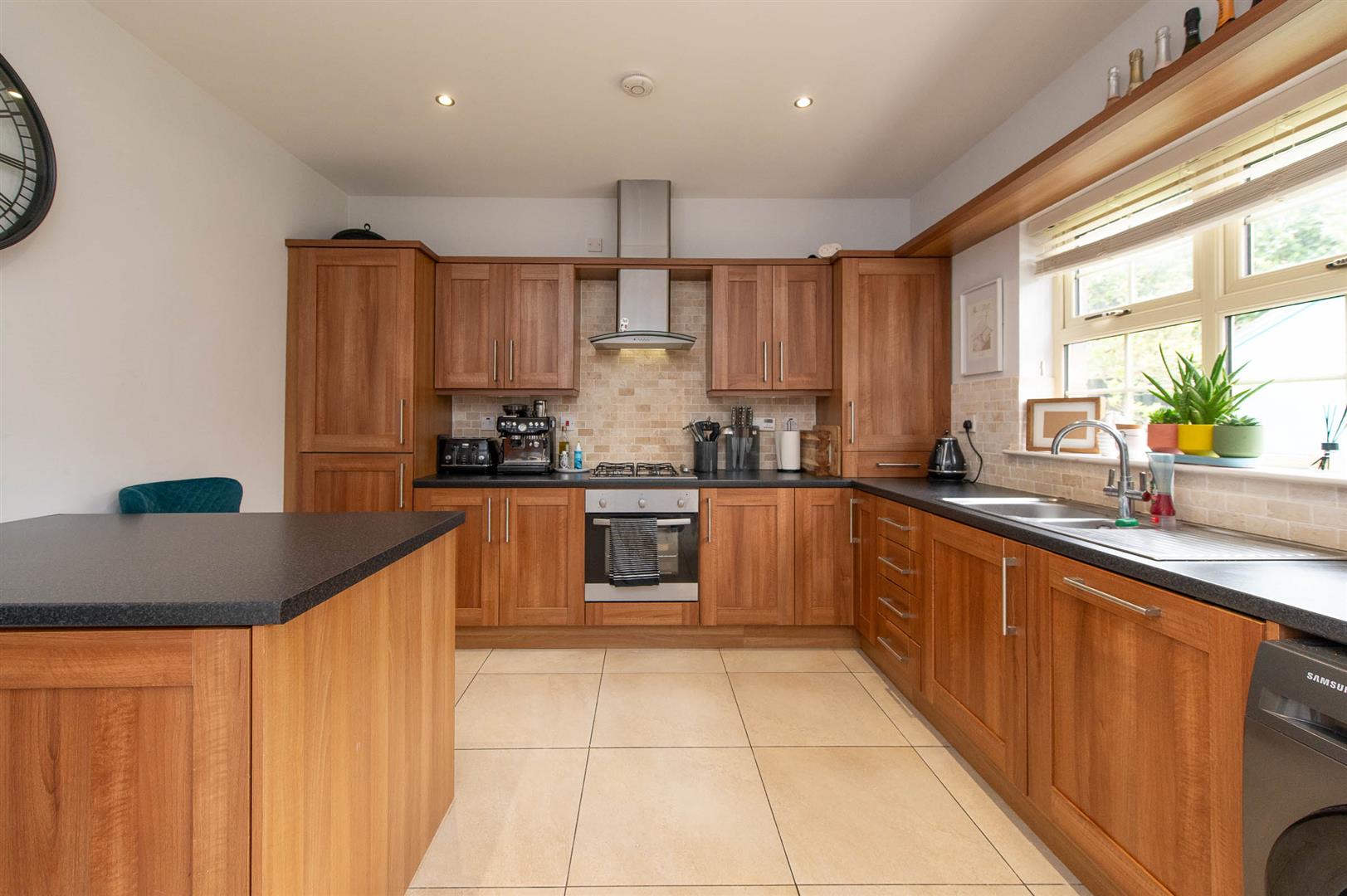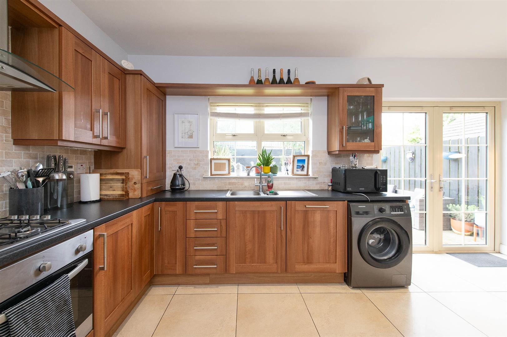 Modern fitted kitchen with a range of high and low level units, round edge work surfaces. Stainless steel sink unit with mixer tap, built in gas hob, built in oven, built in fridge and freezer, built in dishwasher, plumbed for washing machine. Worcester gas boiler.