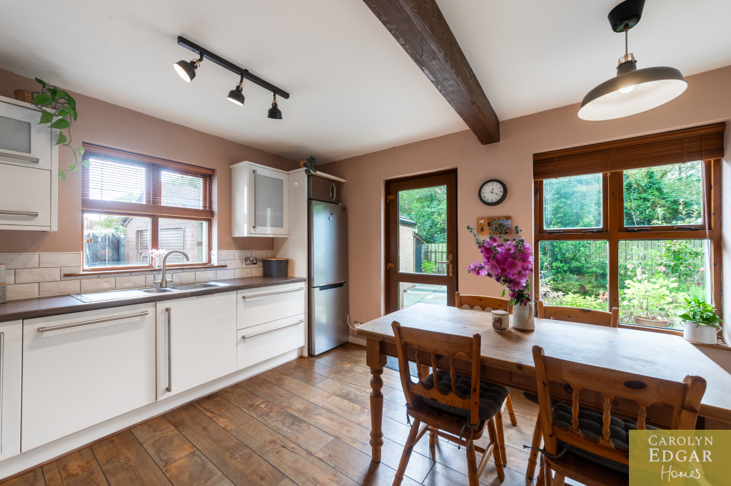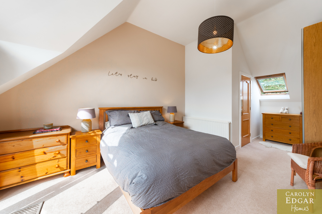 Upstairs are three bedrooms, including a master bedroom with a balcony overlooking the fabulous rear gardens. The vaulted ceilings add an extra touch of elegance. The master bedroom also includes an ensuite bathroom for added convenience. Moreover, there is a balcony at the front of the property, offering lovely views of the front gardens. Outside the property has private gardens to front and large paved driveway to side providing ample car parking for several cars and access to garage and beautifully maintained cottage style gardens to the rear with delightful paved sun terracethis all providing a blend of modern comfort, convenient accessibility, and a peaceful lifestyle in a sought-after location.