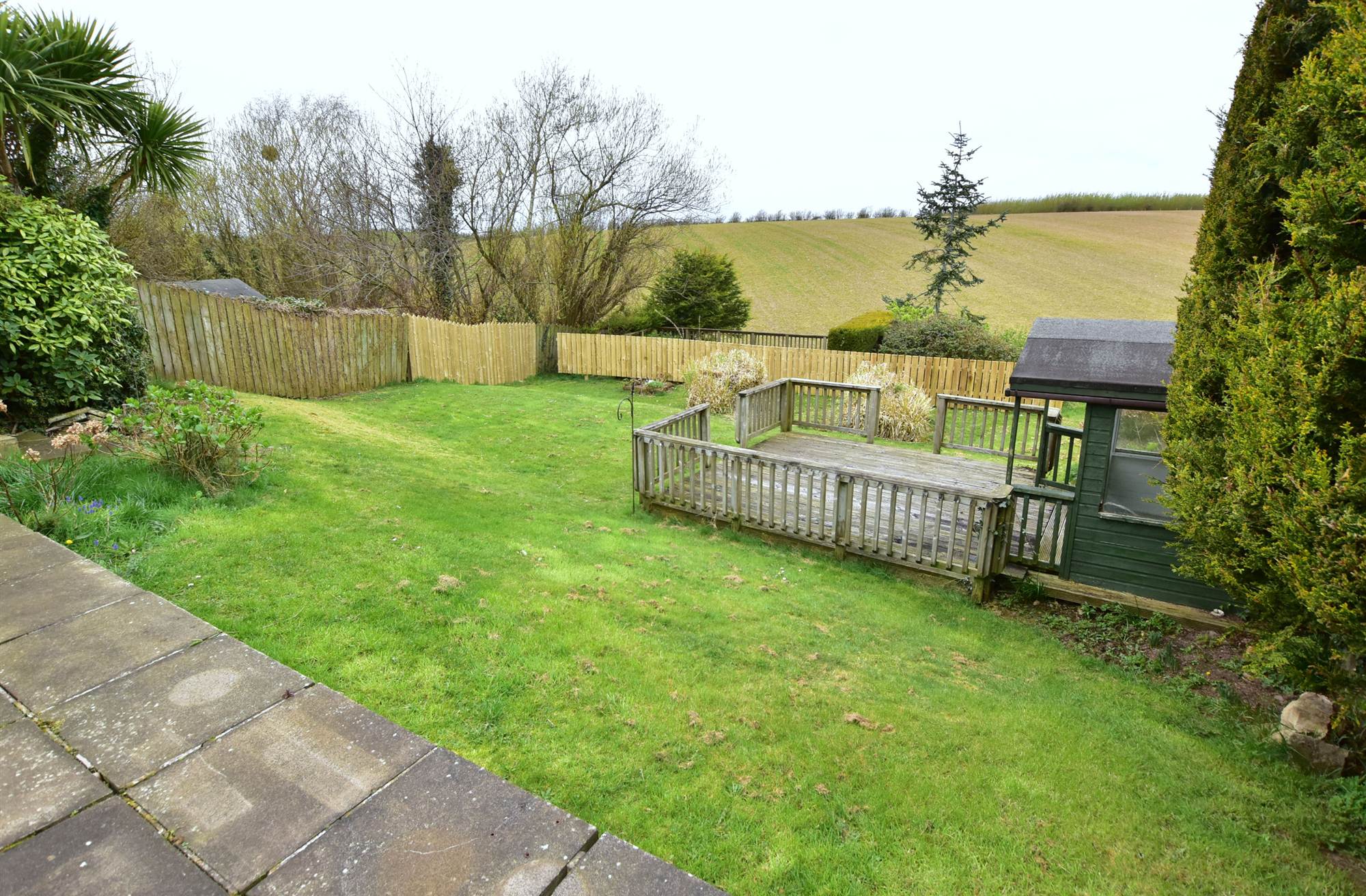 Gardens to front and extensive to rear in lawns, paved patio area, two timber deck areas, trees, bushes and fencing.