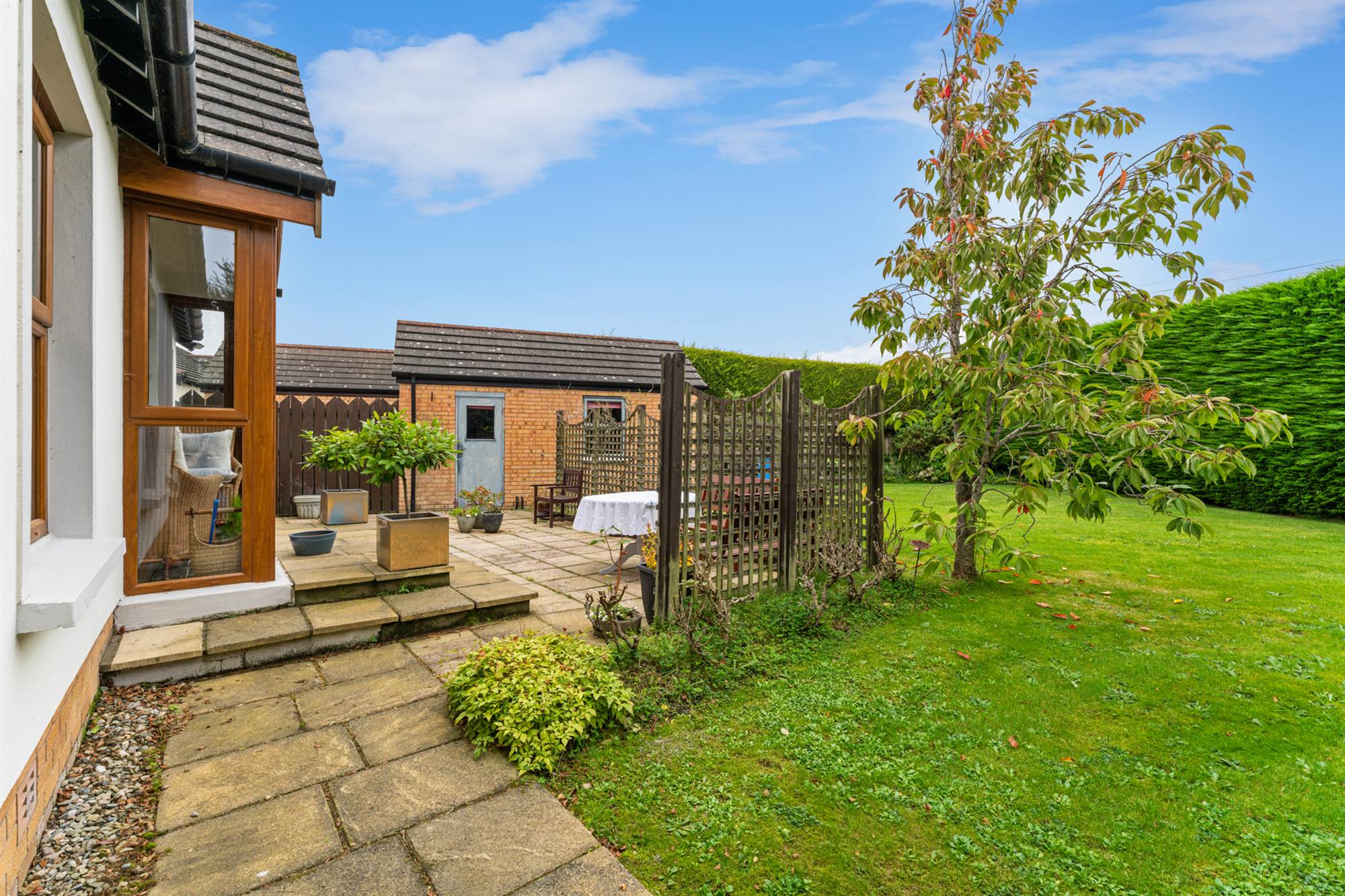 Gardens to front in lawn, shrubs and trees, private walled side garden in lawn, hedging and trees. Private garden to rear laid out in lawn, paved patio, hedging, shrub beds, fencing, boiler house with Turco oil fired boiler, outside tap, outside water tap. Access to both sides for pedestrians.