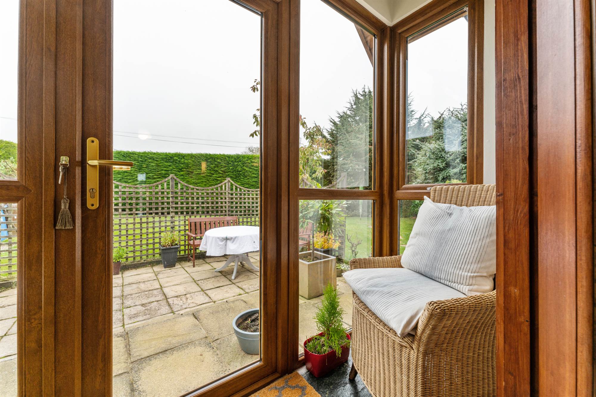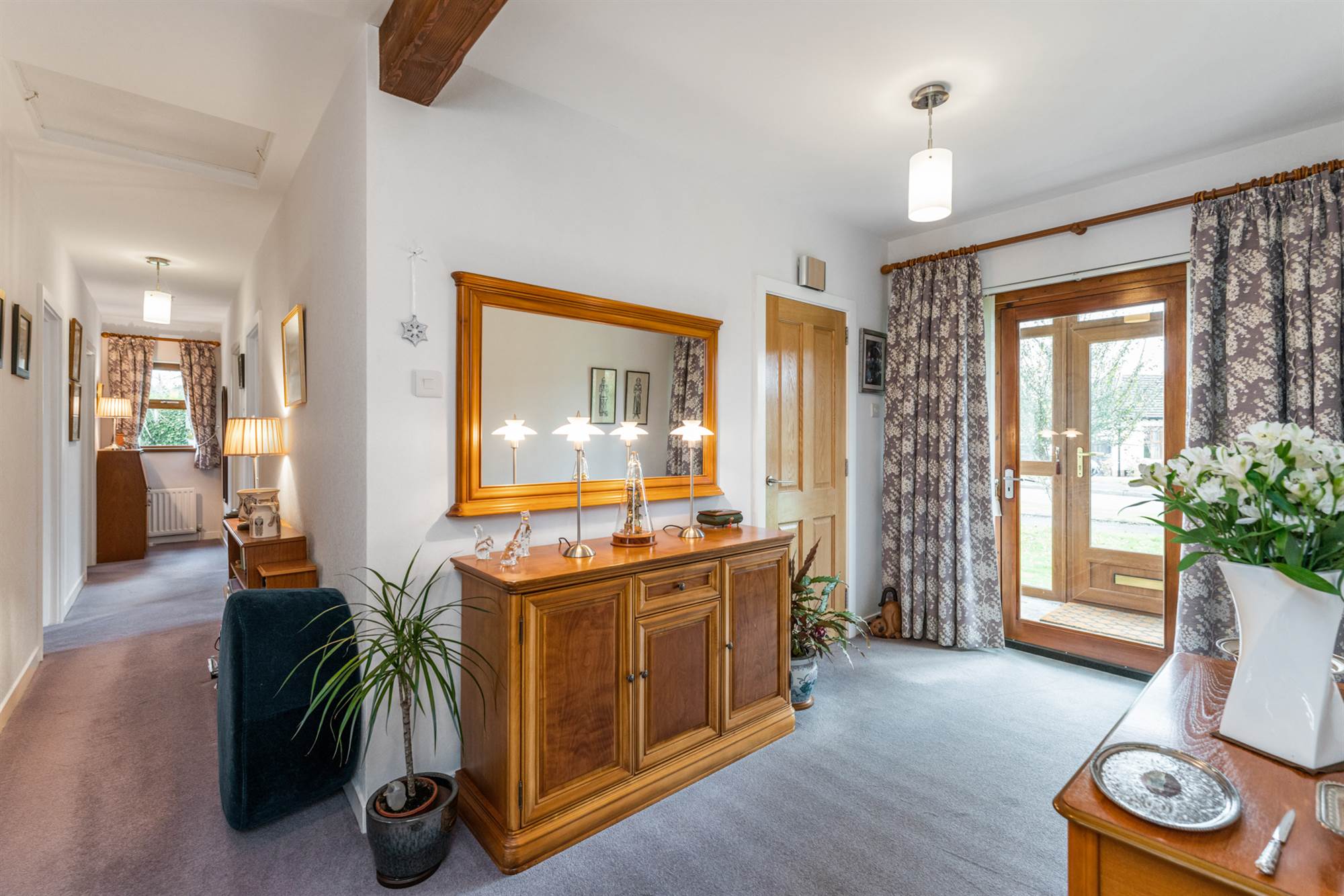 Cloaks cupboard, access to roofspace, glazed door to Lounge, glazed double doors to Dining Room.