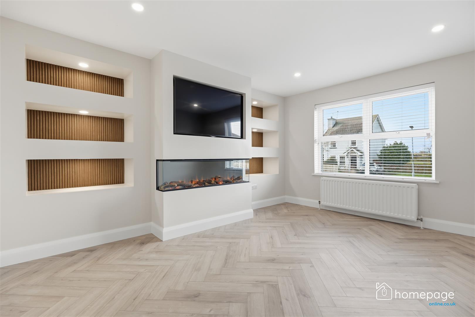 FEATURE MEDIA WALL WITH FIRE & TV