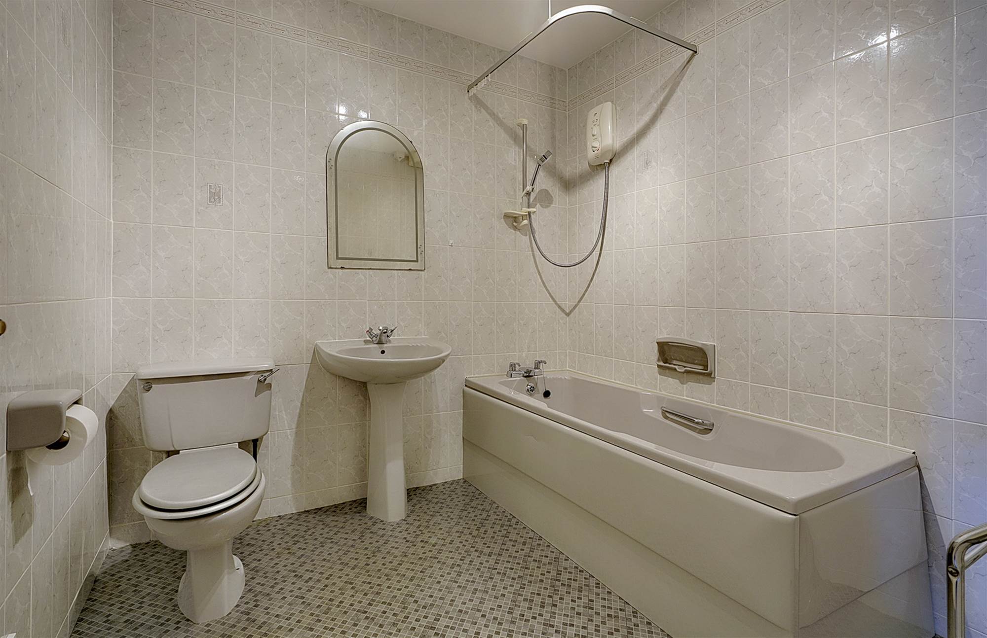 Coloured suite comprising panelled bath with mixer tap and independent electric Mira shower unit, pedestal wash hand basin with mixer tap, low flush wc, fully tiled walls.